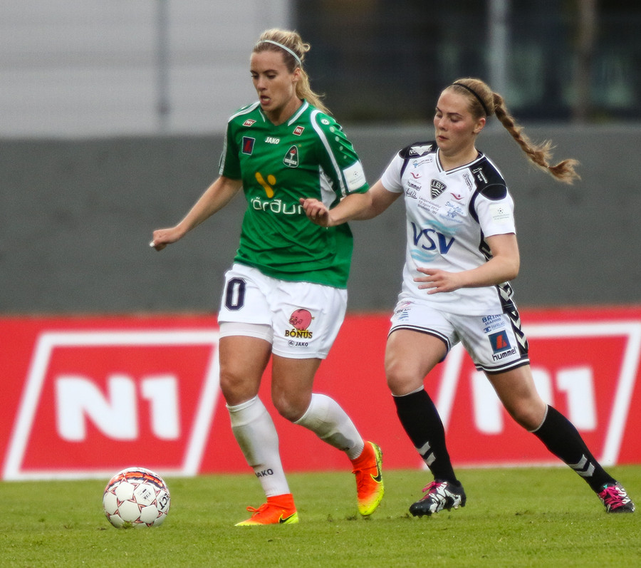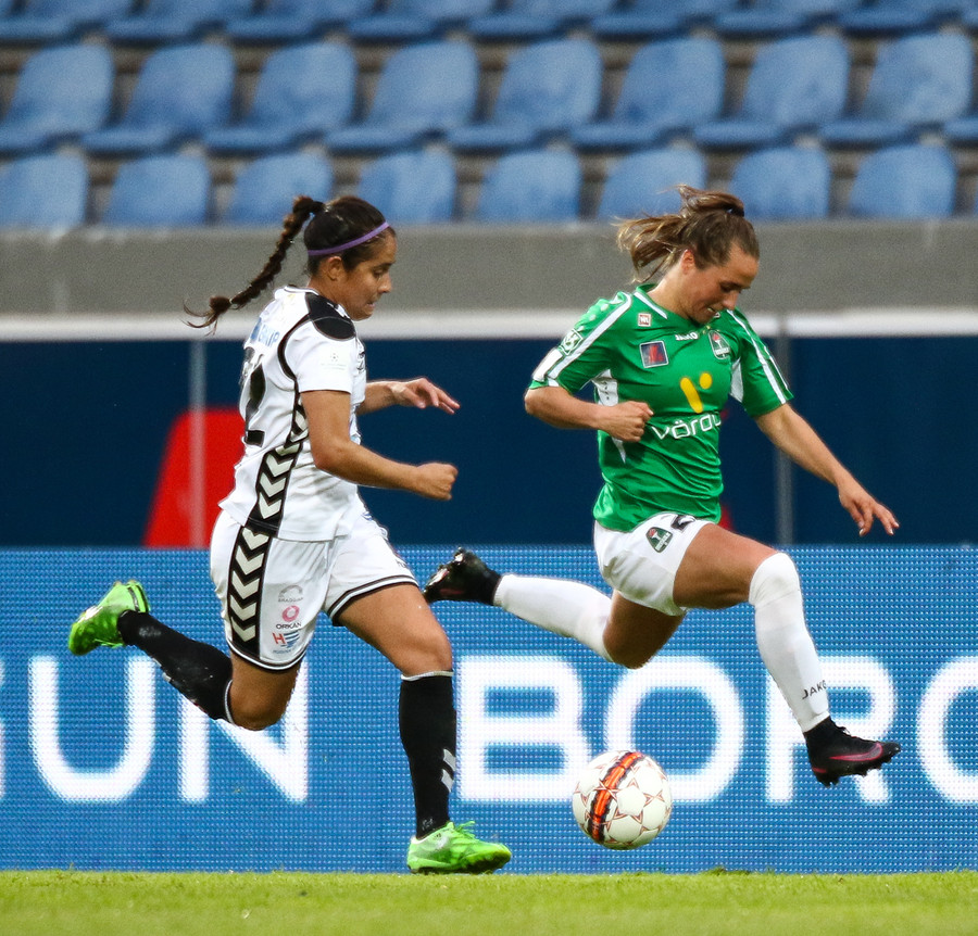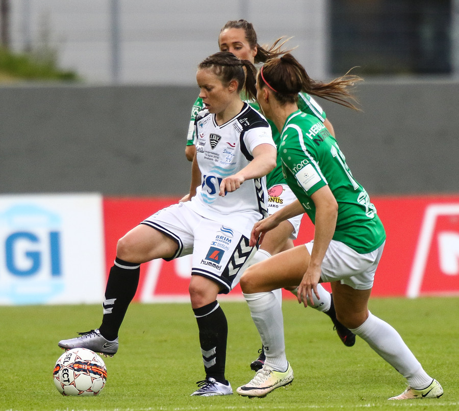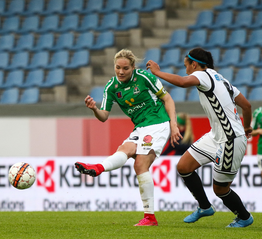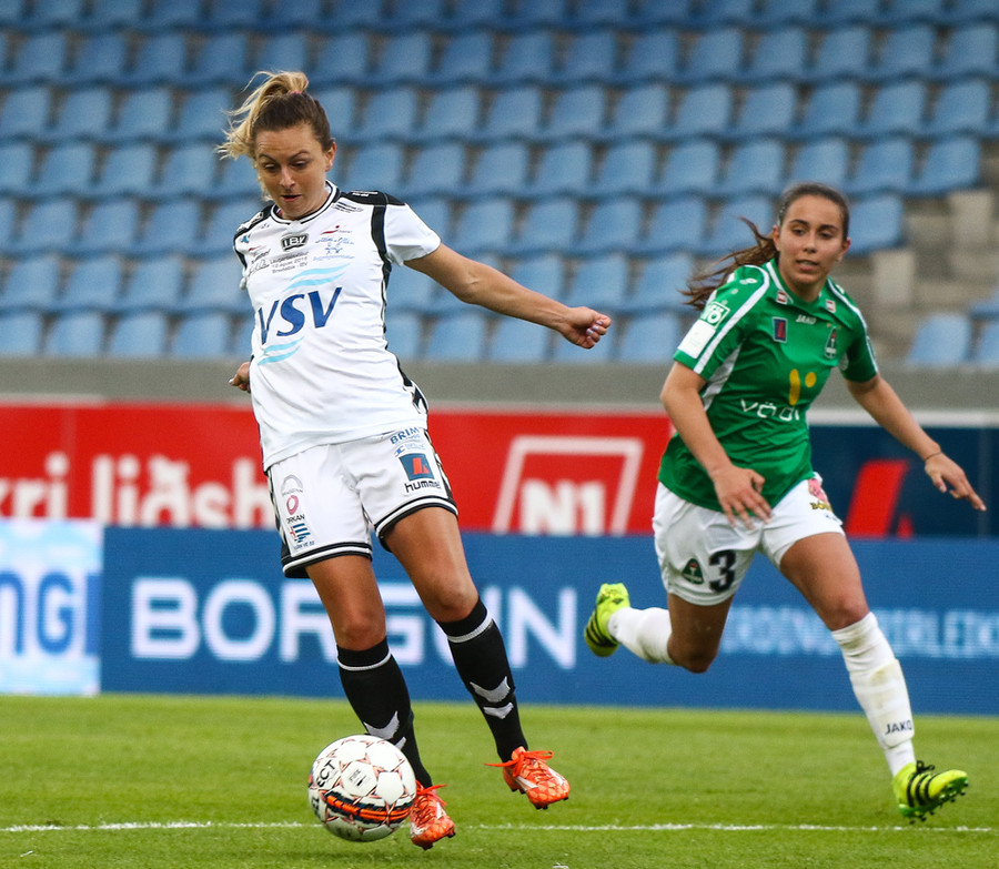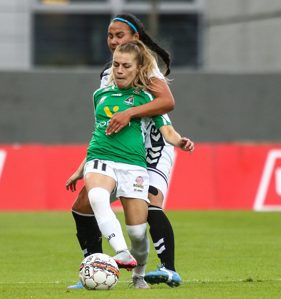 Aftur gerir Fanndís vel að fara upp vænginn, nú á hún fyrirgjöf sem Natasha Anasi kemur í horn.