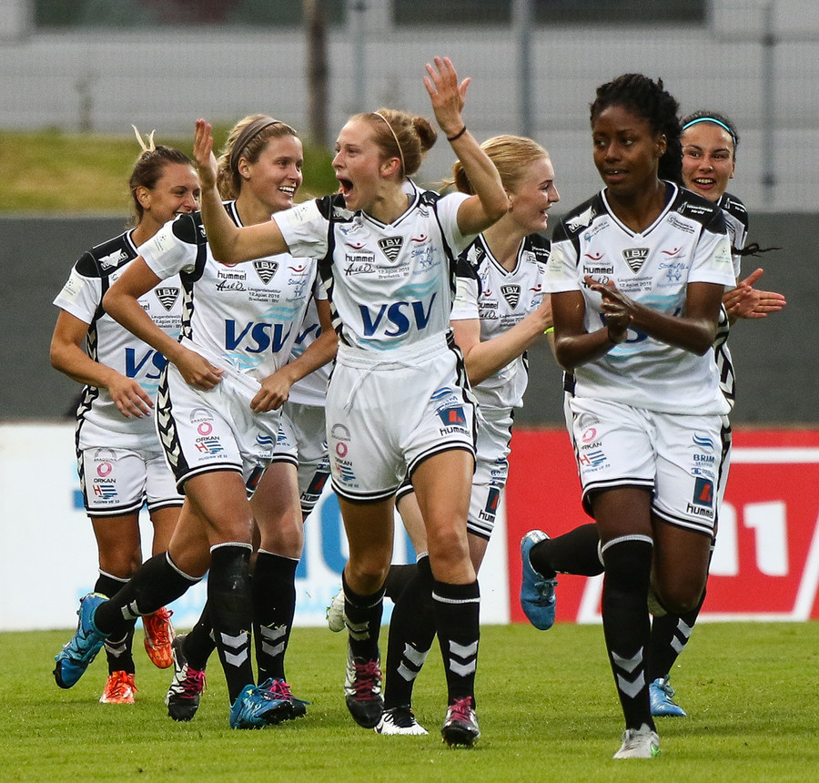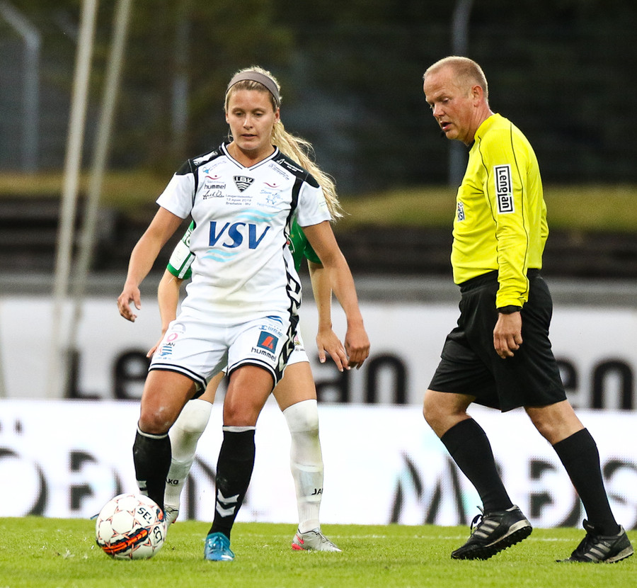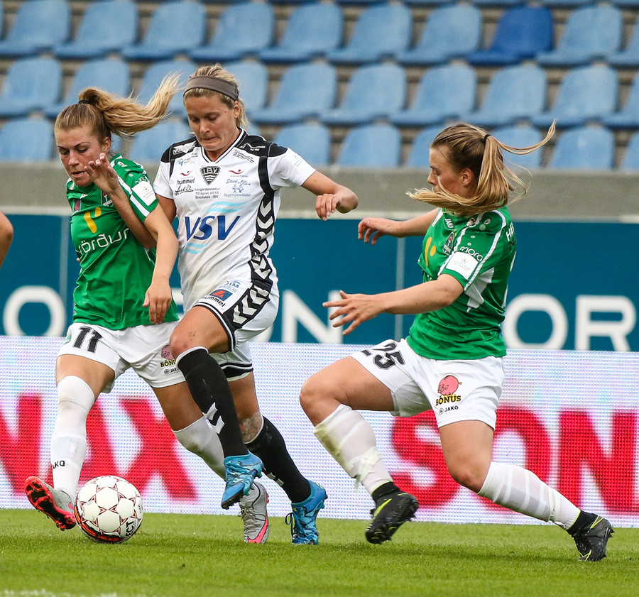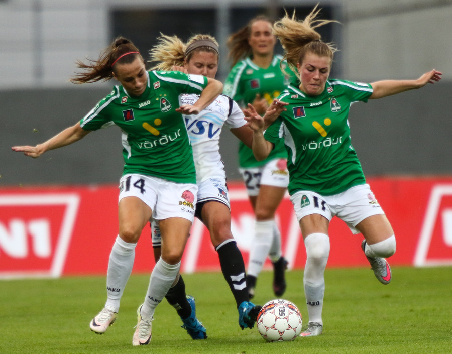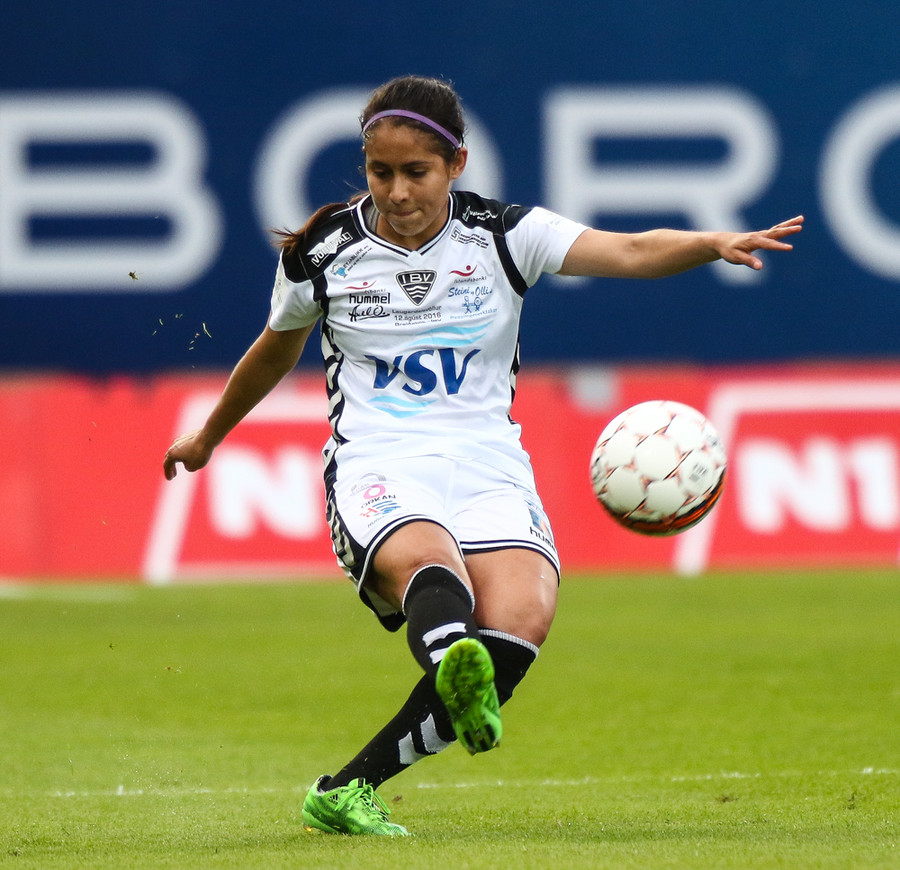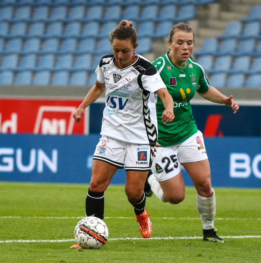 Aftur gerir Fanndís vel að fara upp vænginn, nú á hún fyrirgjöf sem Natasha Anasi kemur í horn.