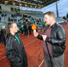 20 mínútur í þennan bikarúrslitaleik og ég er ekki frá því að maður er orðinn virkilega spenntur fyrir þessu. Liðin eru að hita upp og maður er farinn að heyra í trommum upp í stúku.