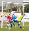 Alexandar Veigar reynir bakfallsspyrnu en Sandor heldur boltanum