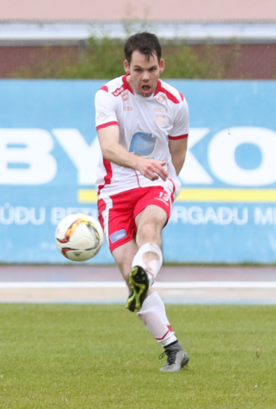 Jóhann Helgi kemst í flott færi en Maciej ver vel í markinu. Enn og aftur nær Jóhann Helgi ekki að skora
