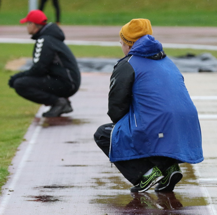 Það rignir vel þessa stundina og völlurinn er vel blautur