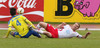 Juan fer að öllu afli í tæklingu á Jónas. Fór vissulega í boltann en hafði enga stjórn á fótunum. Réttur dómur
