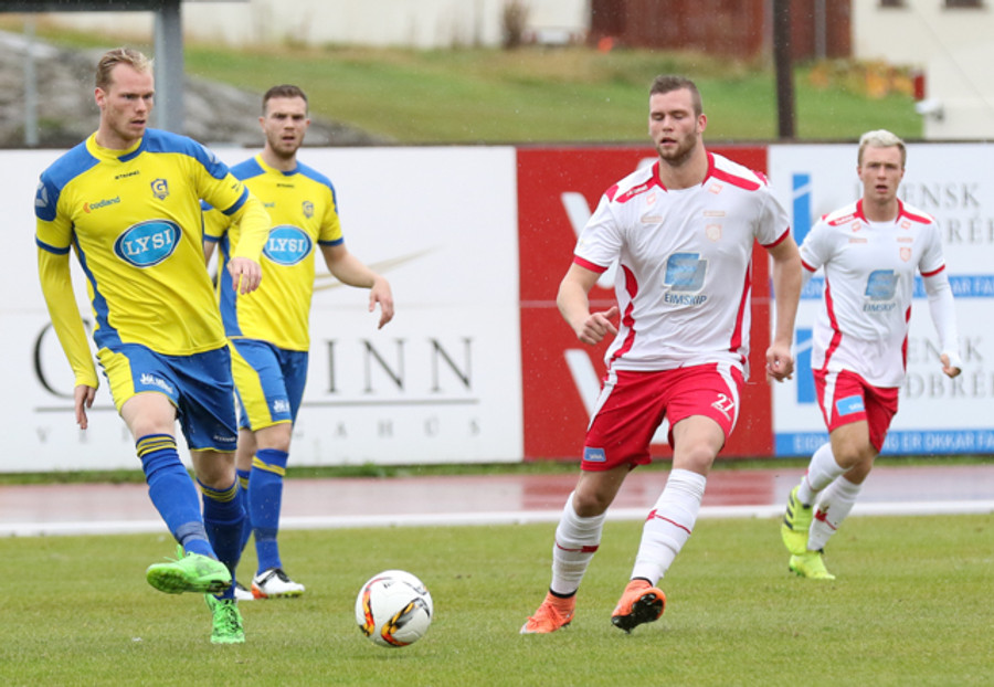 Ólafur Hrafn sýnir flotta takta, kemur með langa sendingu innfyrir á Jóhann Helga sem er rangstæður