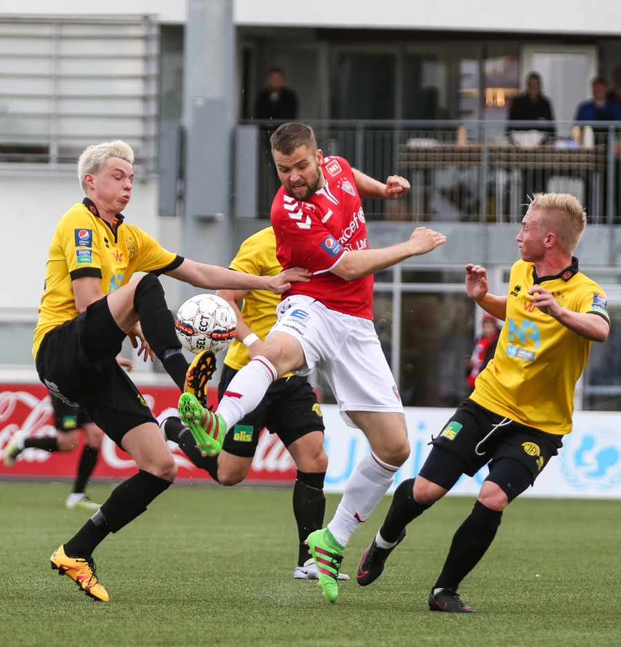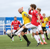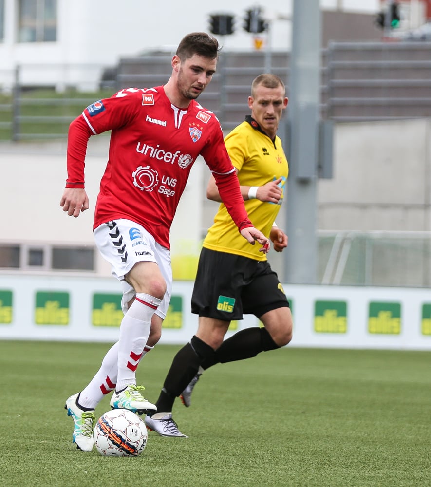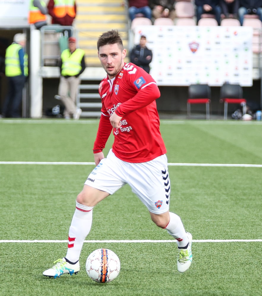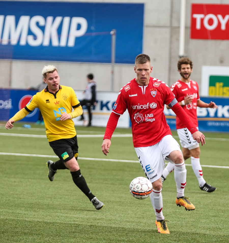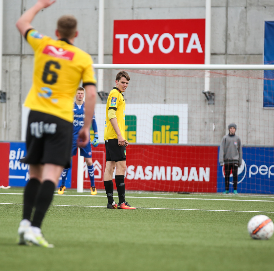 Kristian Gaarde með skot inní teig sem Hafþór Pétursson kemst fyrir og hreinsar burt.