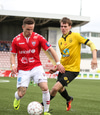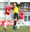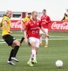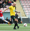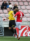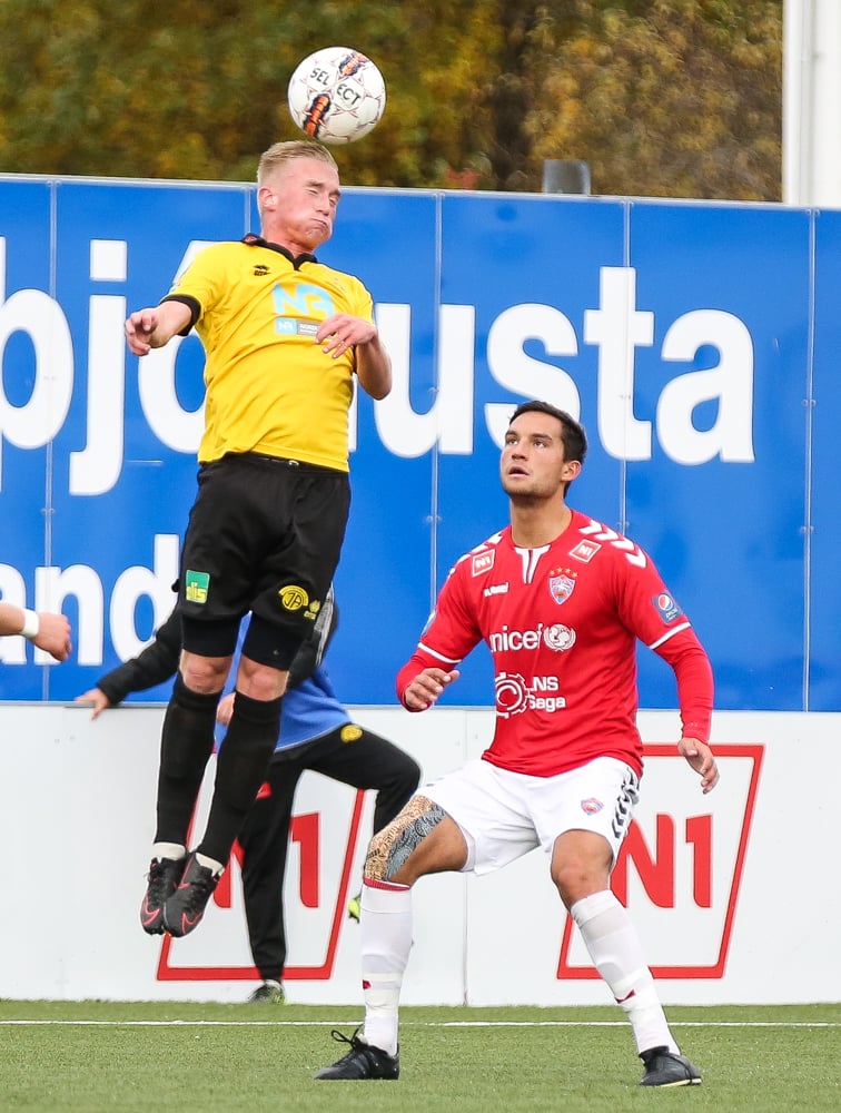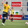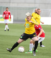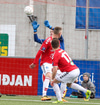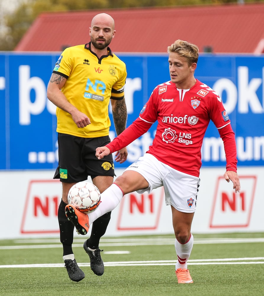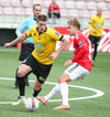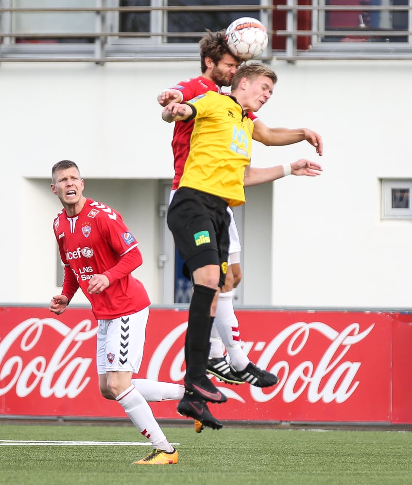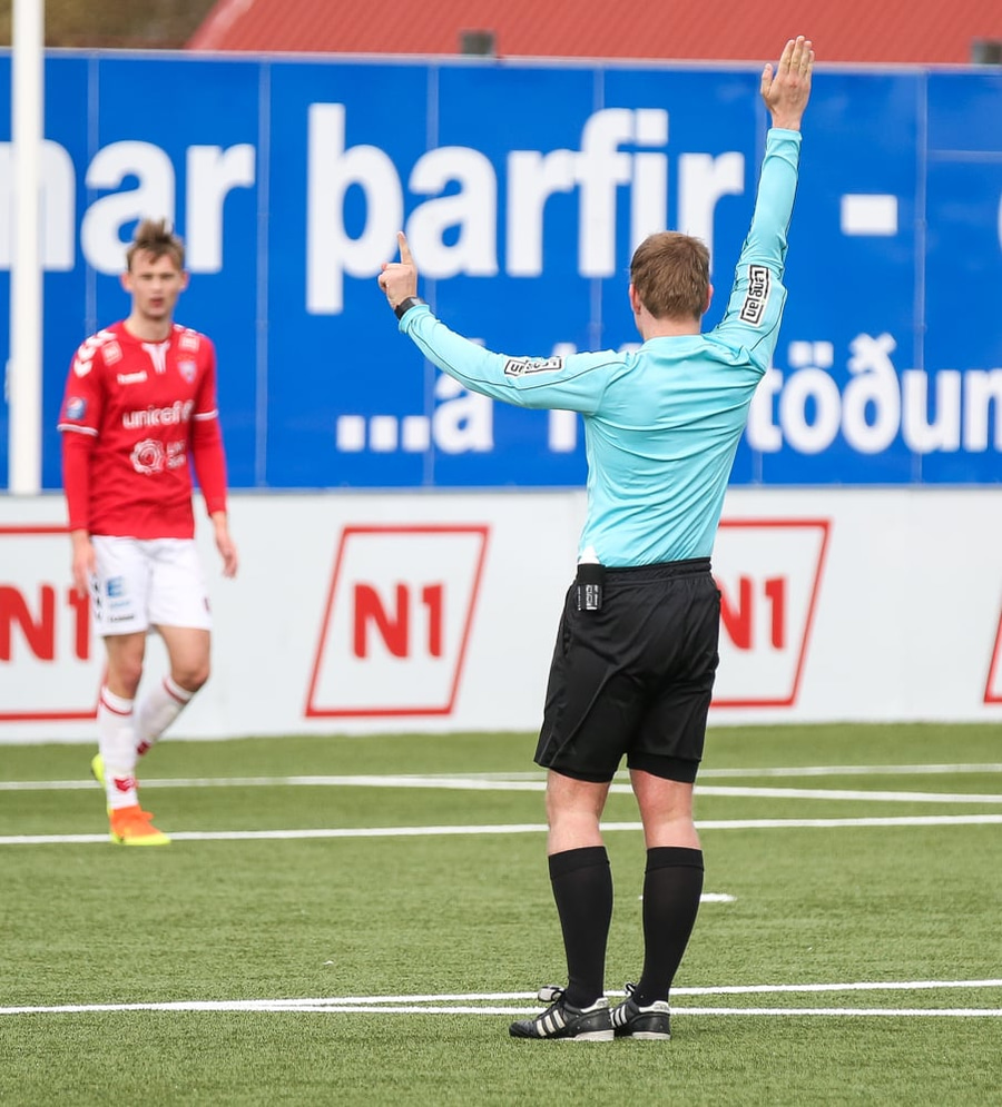 Kristian Gaarde með skot inní teig sem Hafþór Pétursson kemst fyrir og hreinsar burt.