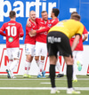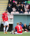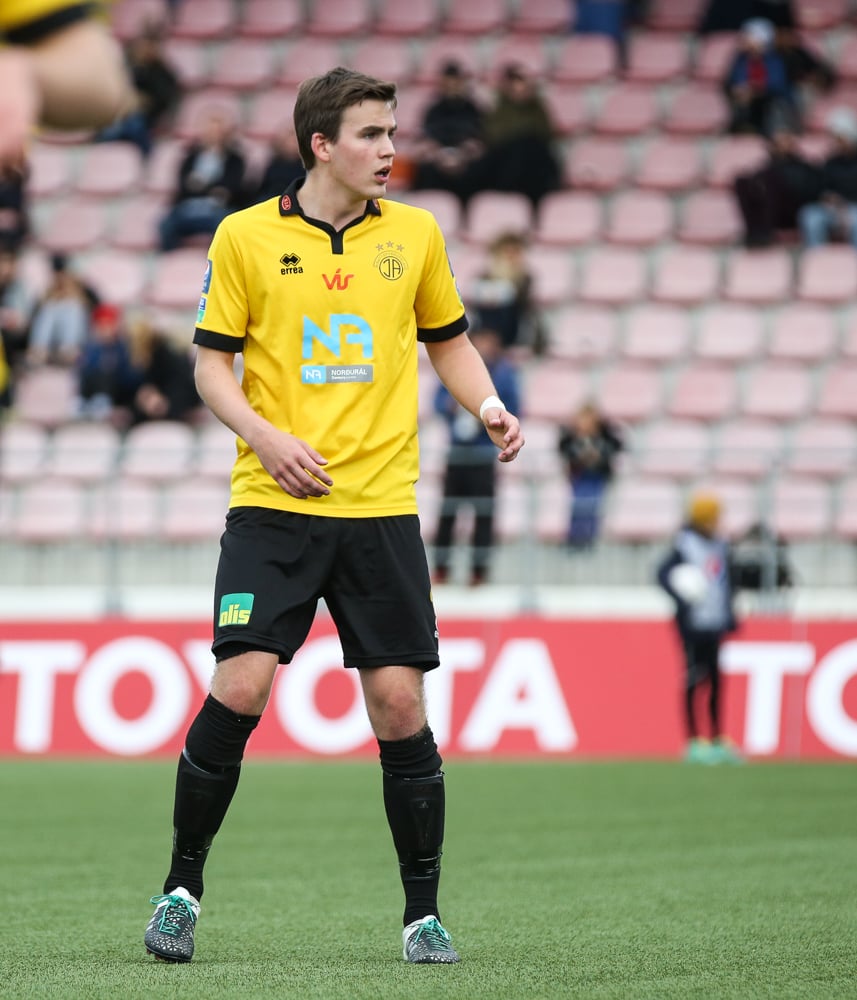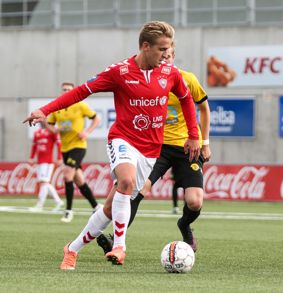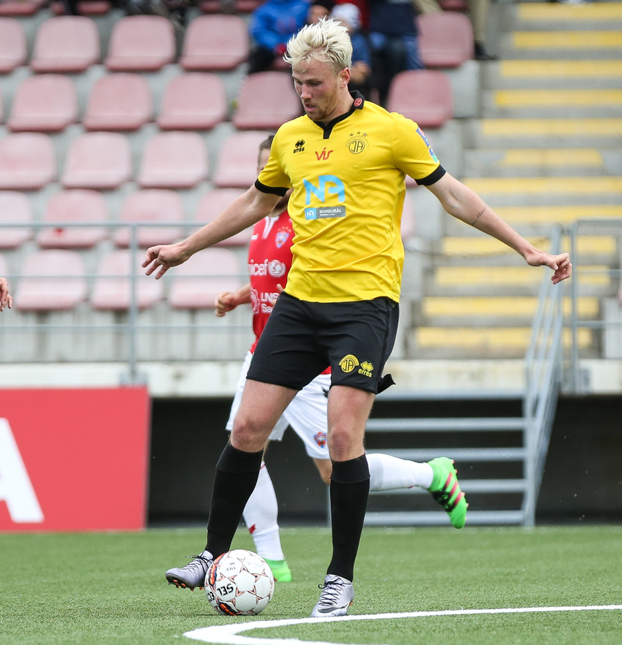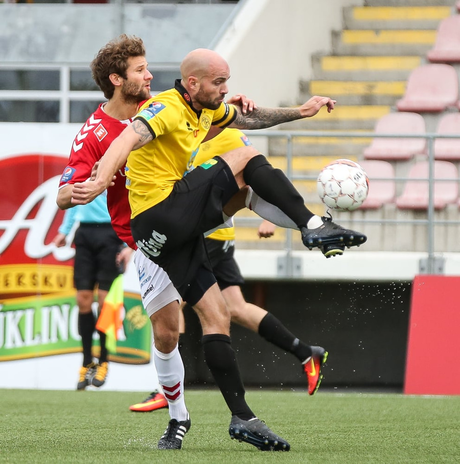 Kristinn Freyr skorar en rangstæða dæmd. Kristinn og Hansen voru sloppnir einir í gegn Hansen óeigingjarn og gefur á Kristinn sem var fyrir innan þegar sendinginn kom.