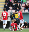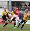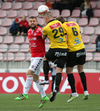 Kristinn Freyr með fastan skalla að marki eftir fyrirgjöf frá Gaarde en Darren lough kemst fyrir og Skagamenn ná að hreinsa.