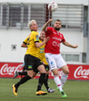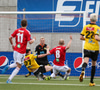 Gaarde fær sendingu á fjærstöng og skallar í hliðarnetið fín sókn hjá valsmönnum