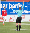 Sigurður Egill með góða sendingu fyrir en aðeins of framarlega fyrir Andra sem nær ekki til boltans og boltinn endar afturfyrir.