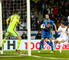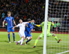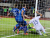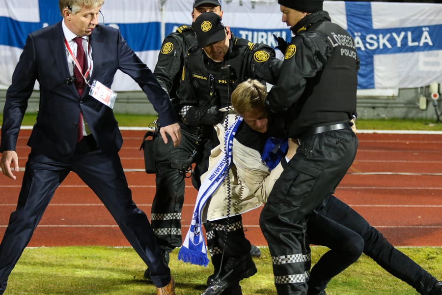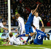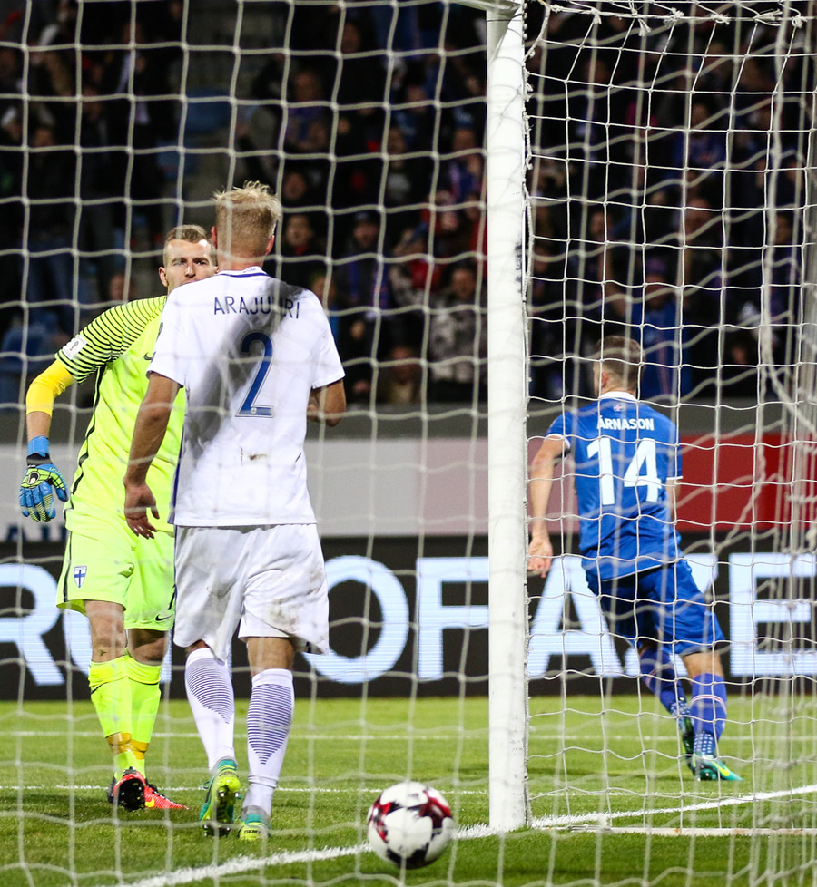 Finnar eru komnir yfir. Arkivuo á fyrirgjöf sem Pukki skallar í bláhornið af stuttu færi. Flottur skalli en varnarleikurinn ekki merkilegur. Gjörsamlega frír skalli.