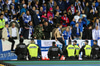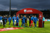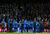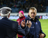 Þjóðsöngvarnir eru búnir og búið að fjölga í stúkunni. Samt ekki alveg fullt.