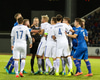 Kári braut af sér og Finnar voru ósáttir við brotið og það urðu smá slagsmál í kjölfar þess. Þrír fá gult og leikurinn heldur áfram. Aron verður því í banni gegn Tyrkjum.