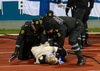 Markkanen liggur nú eftir eitthvað meiddur. Finnar eru byrjaðir að taka sér langan tíma í allt saman.