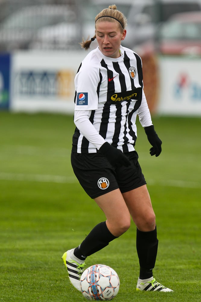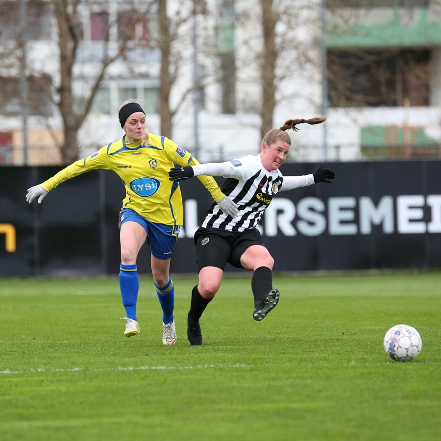 Sara Lissy skallar boltann aftur fyrir sig sem reynist fínasta stungusending fyrir Lauren sem skýtur beint á Hrafnhildi í markinu. Hún hefði mátt fara nær þarna.