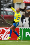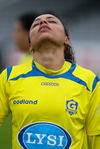 Keyrir hér harkalega á Carolina og fær að launum gult spjald.
