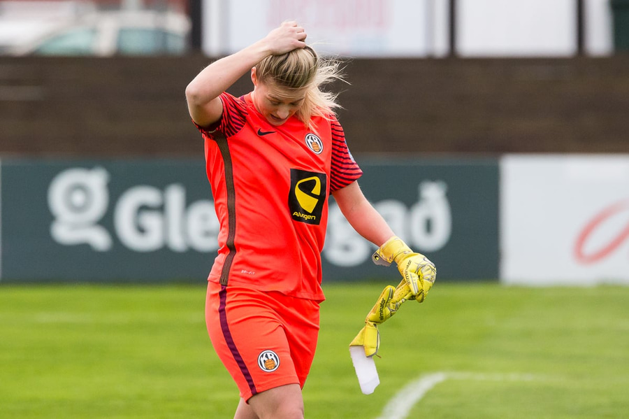 Í kjölfar rauða spjaldsins kemur Ingibjörg í markið og Elísabet skokkar útaf.
