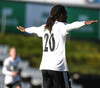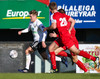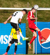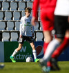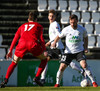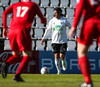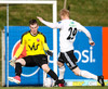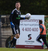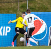 Veigar Páll Gunnarsson tók aukaspyrnu rétt fyrir utan teig. Skaut en Róbert í markinu varði fremur máttlausa spyrnu.