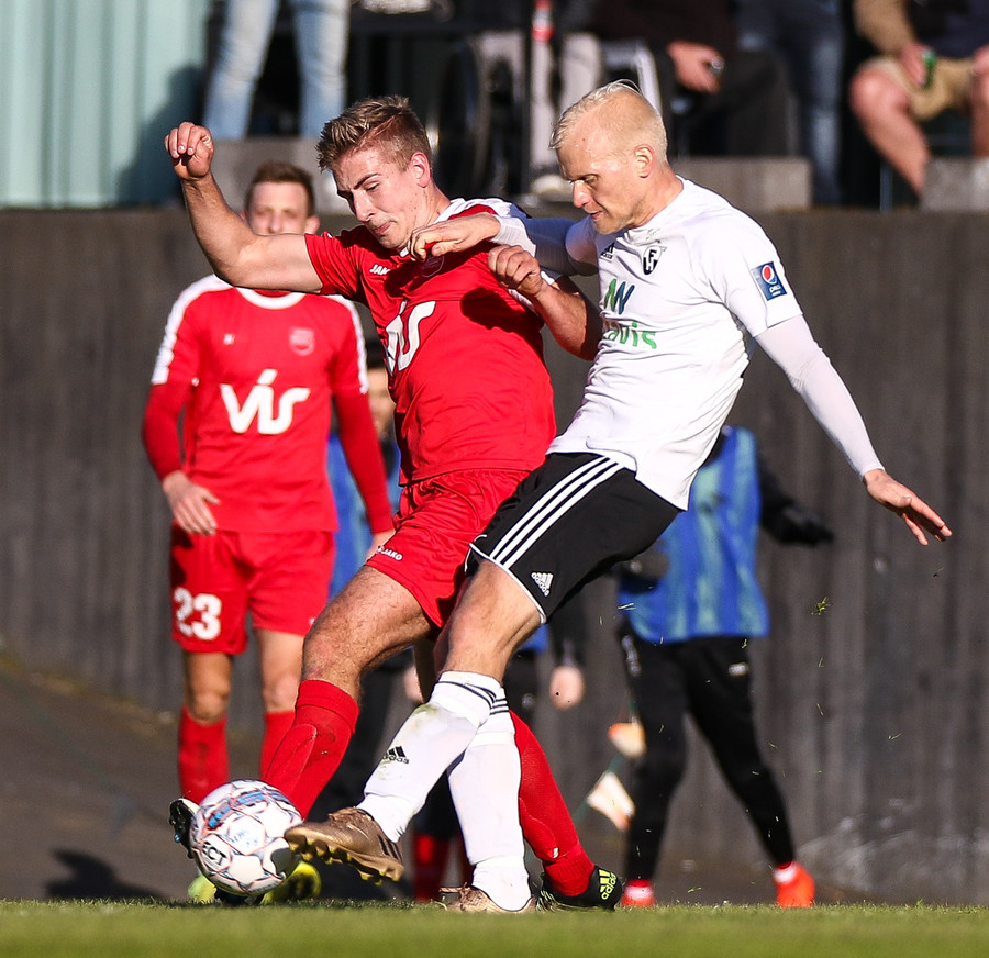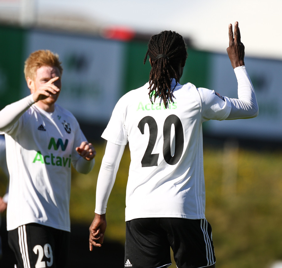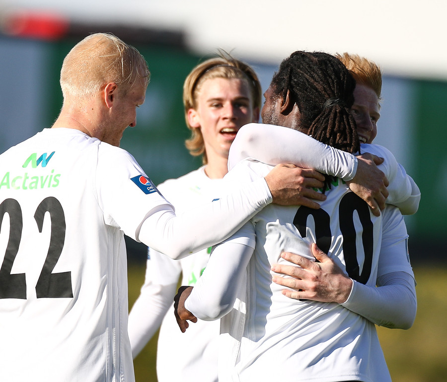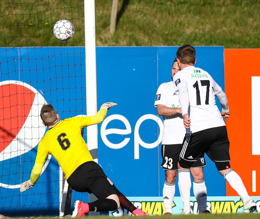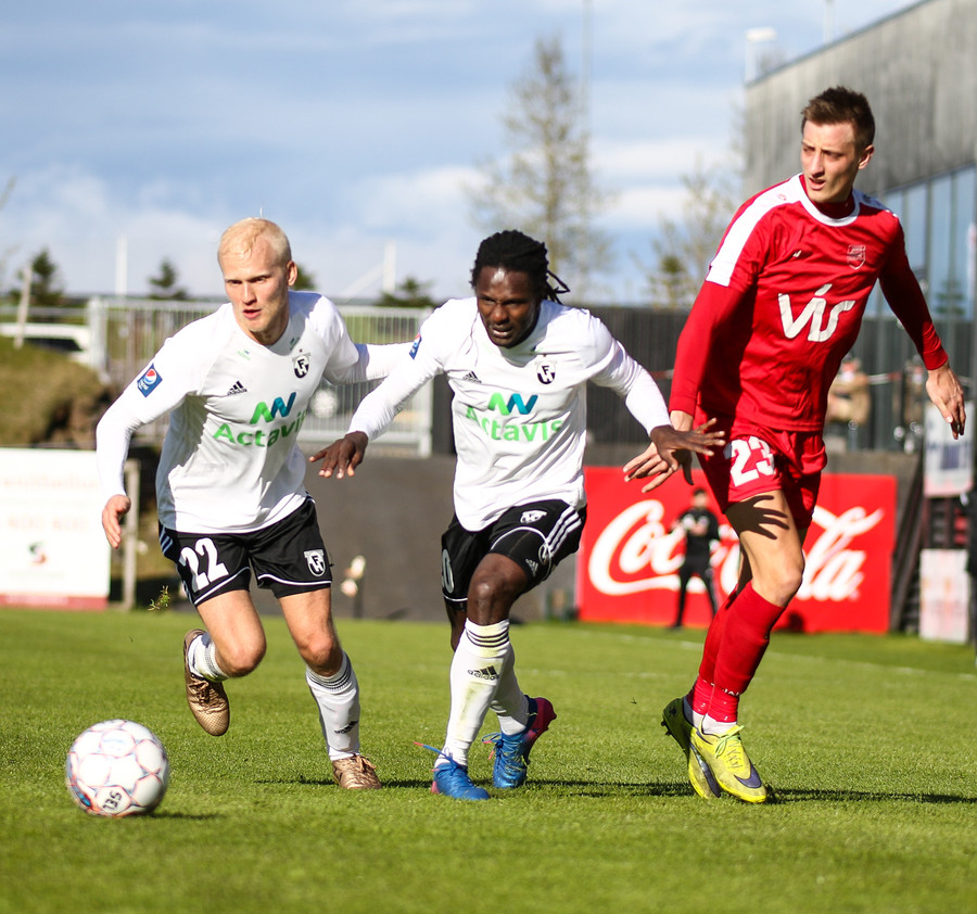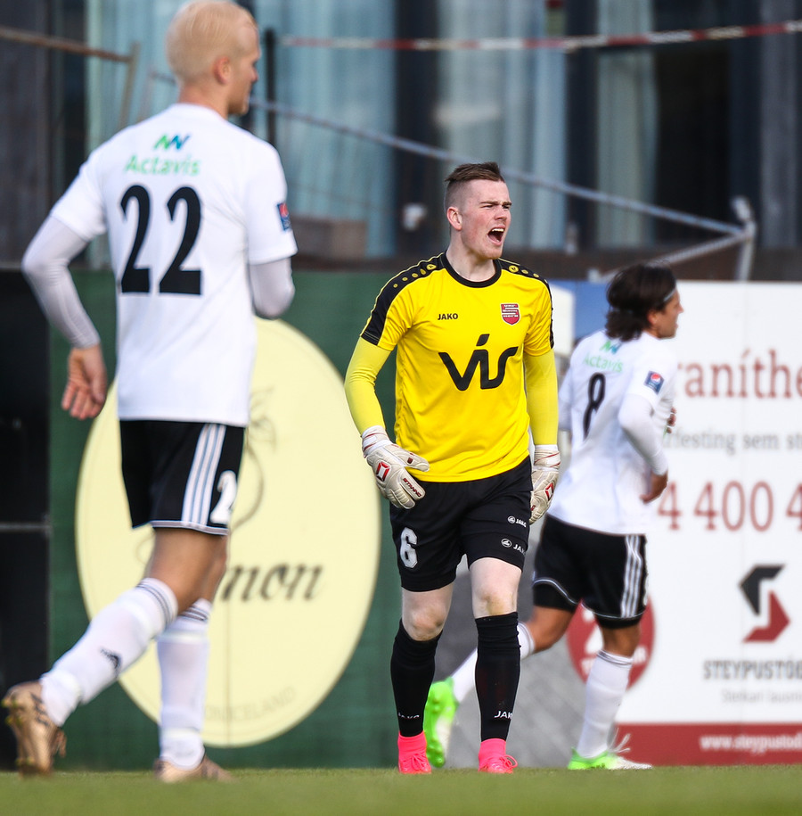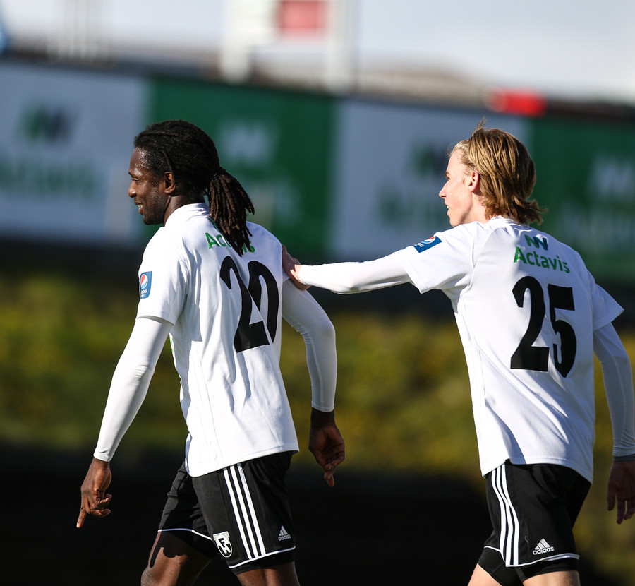Kassim átti skalla á markið sem Róbert Marvin varði en boltinn fór upp í loft og lenti svo á kolli Emils Pálssonar sem skoraði.