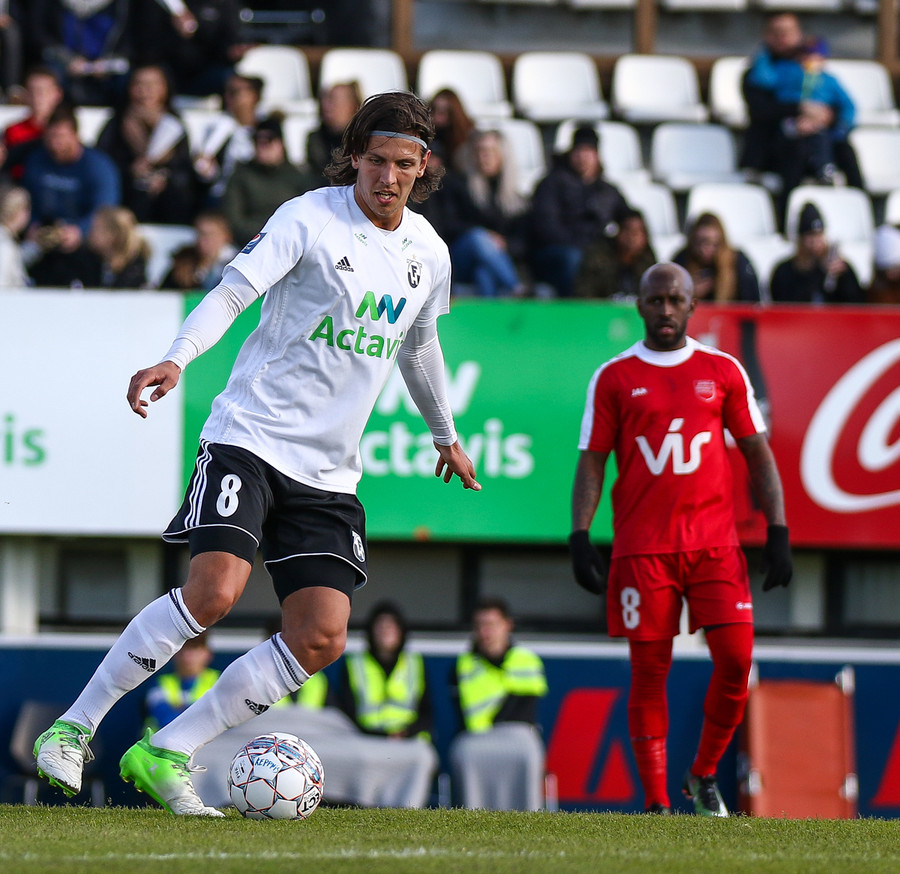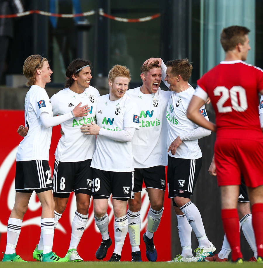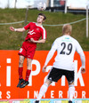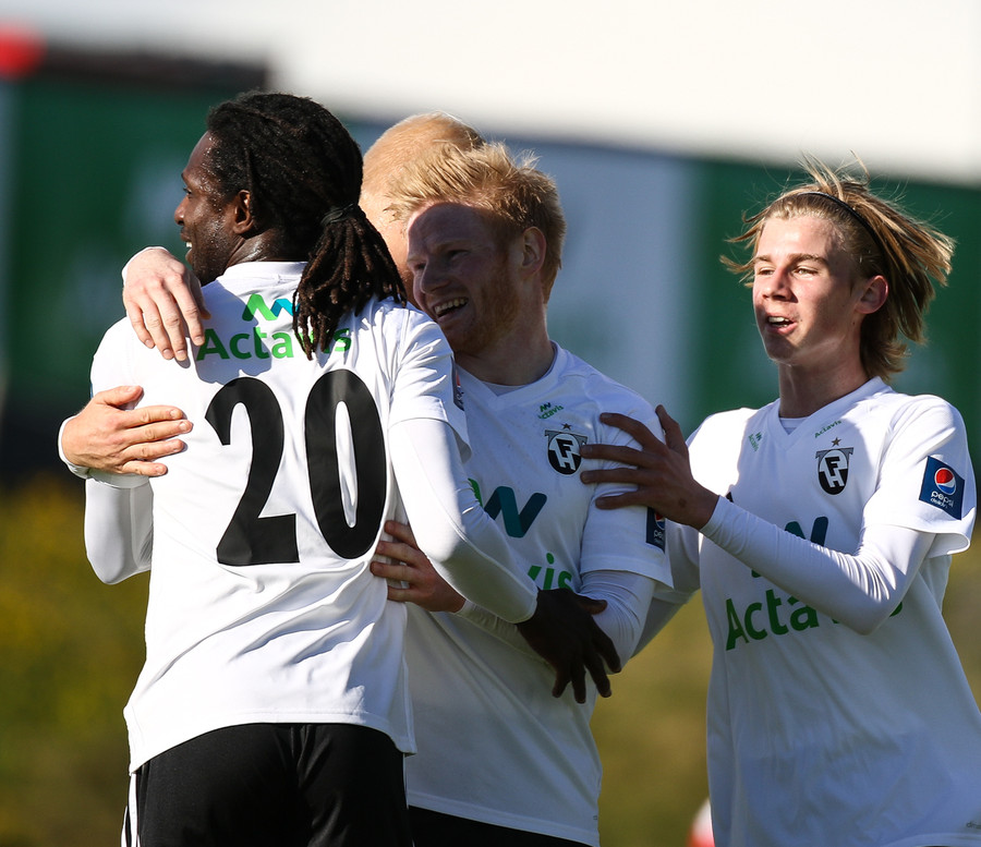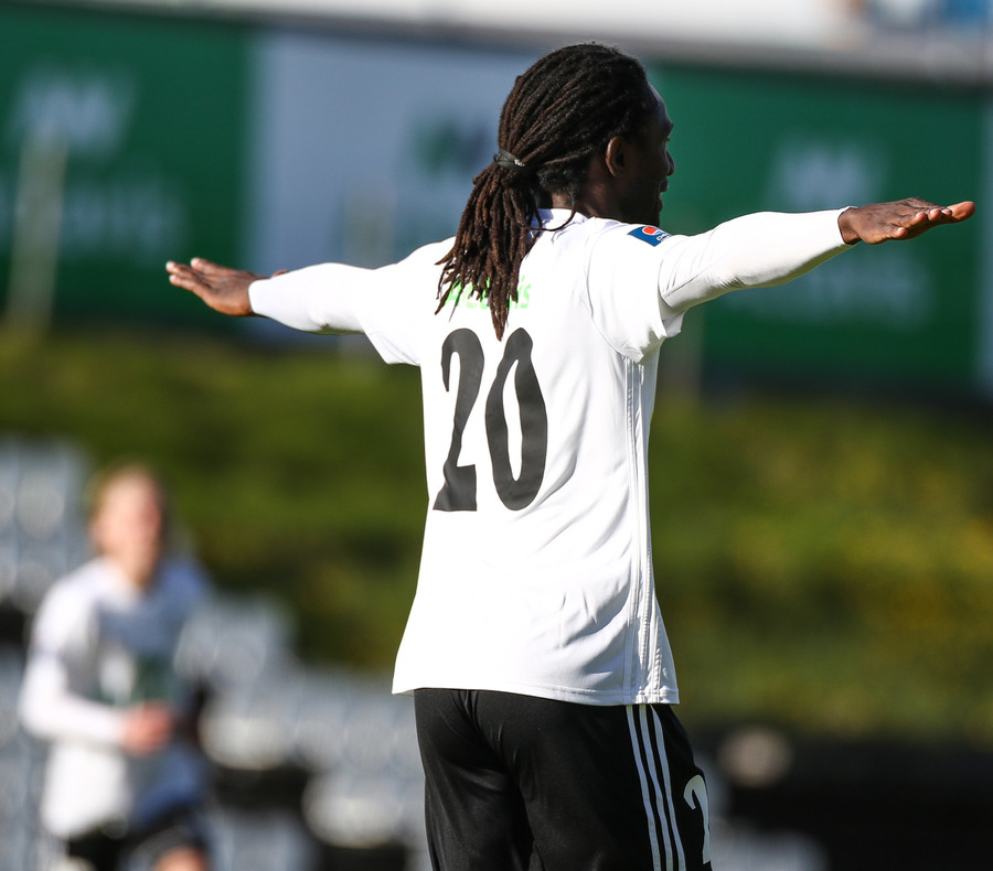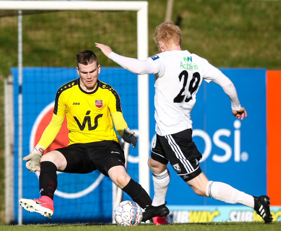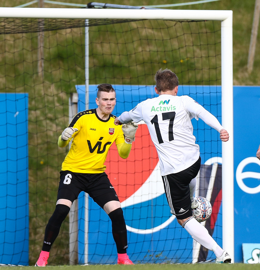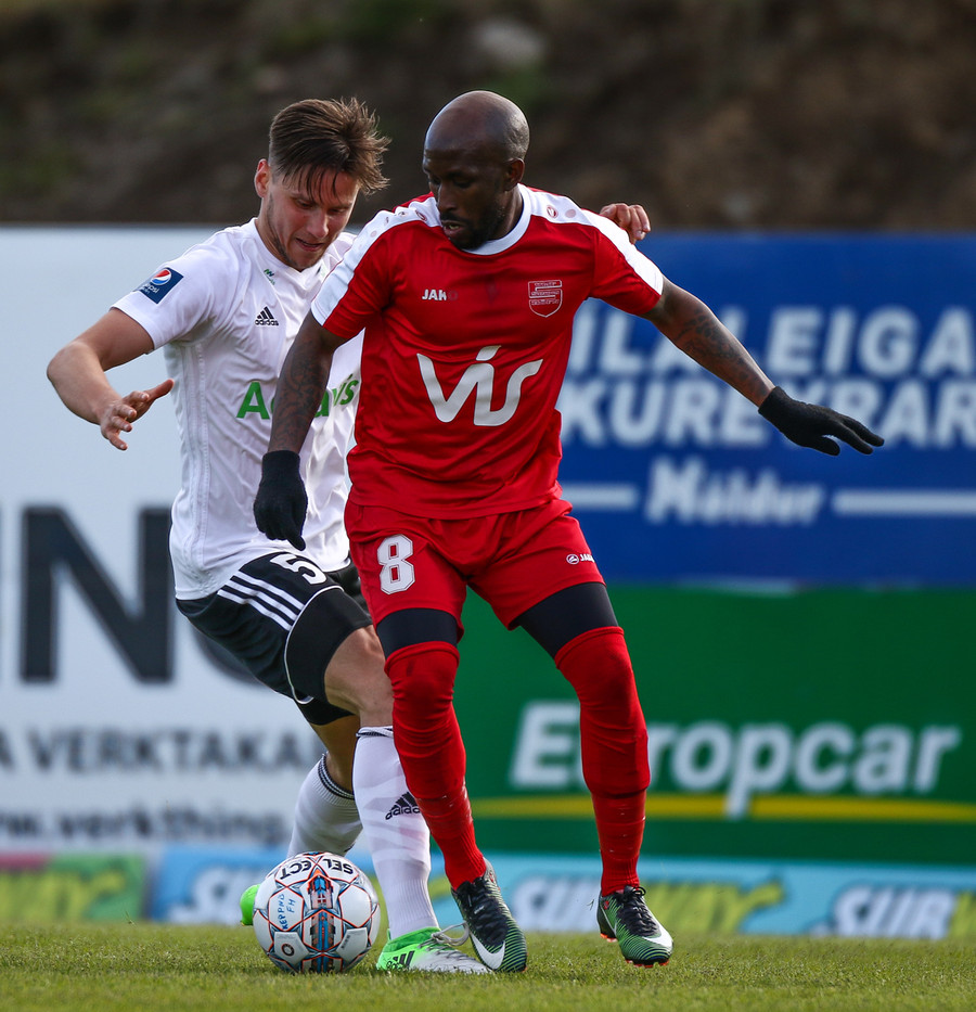 Kassim átti skalla á markið sem Róbert Marvin varði en boltinn fór upp í loft og lenti svo á kolli Emils Pálssonar sem skoraði.