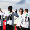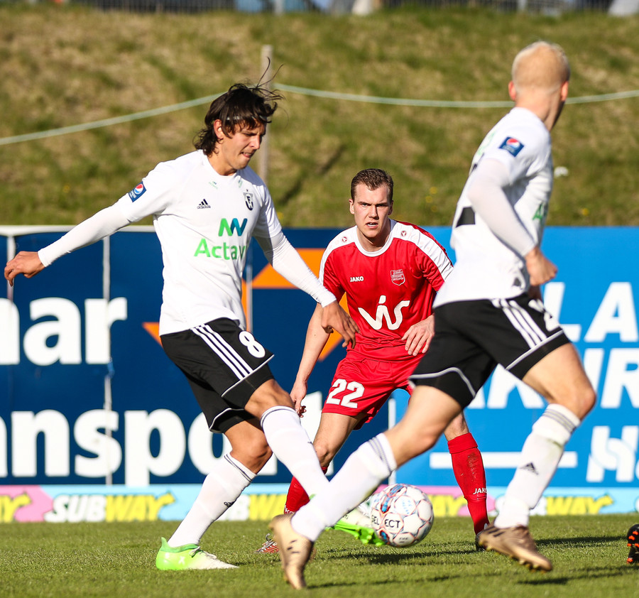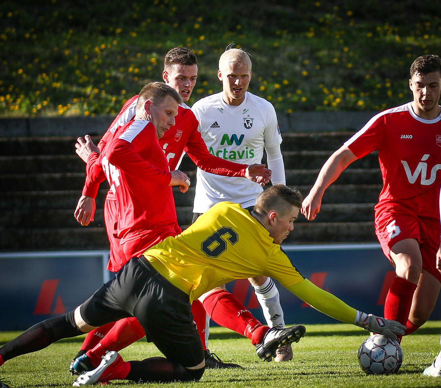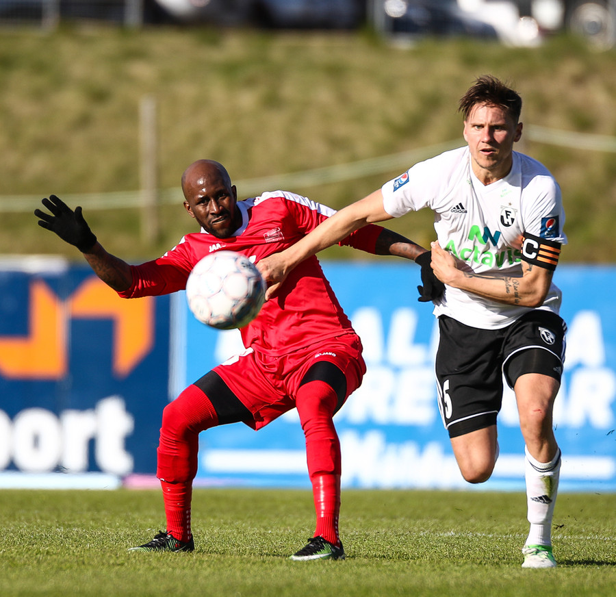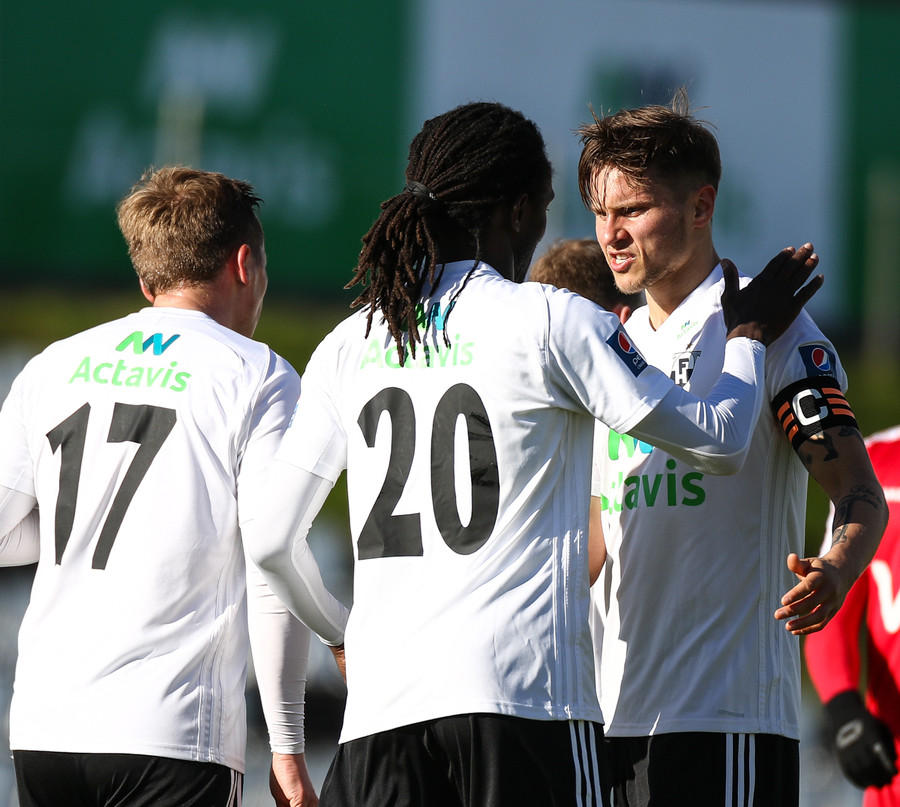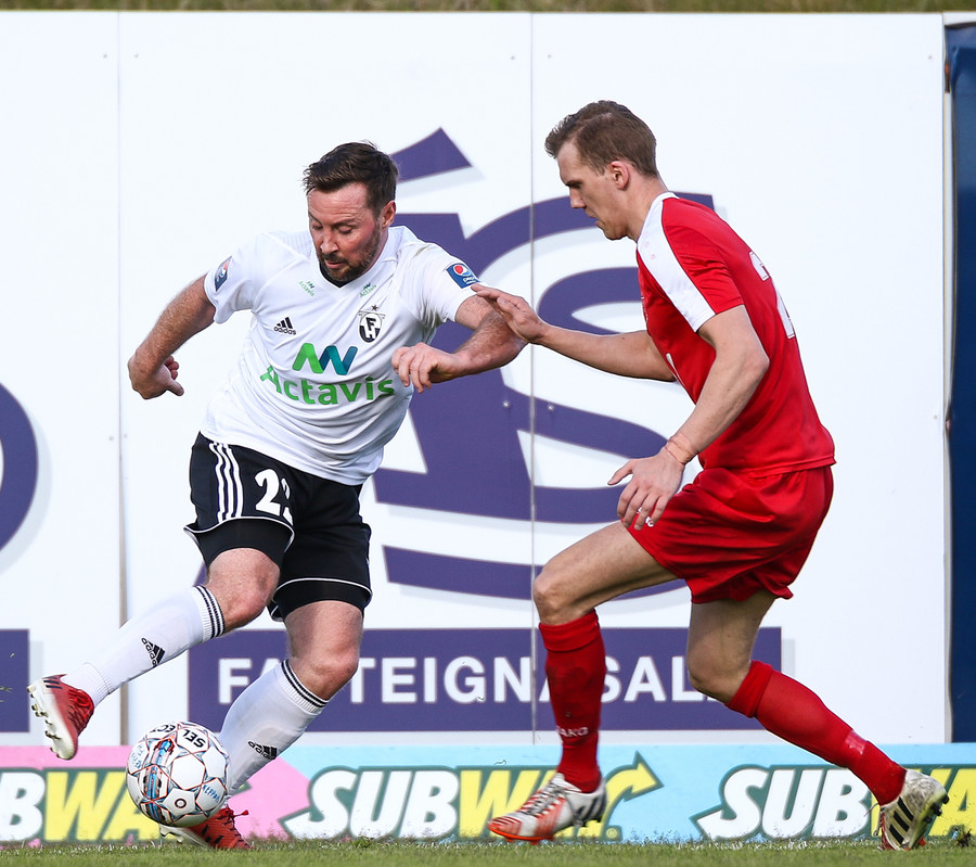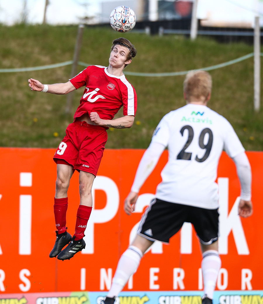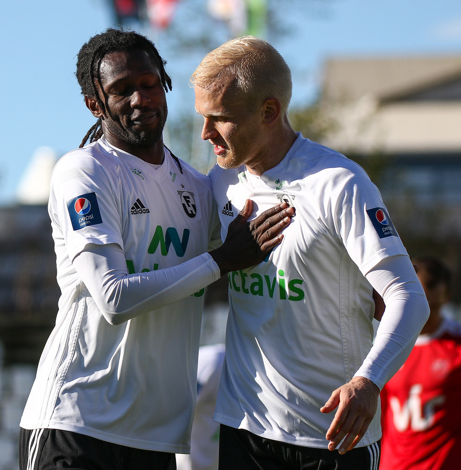 Kassim átti skalla á markið sem Róbert Marvin varði en boltinn fór upp í loft og lenti svo á kolli Emils Pálssonar sem skoraði.