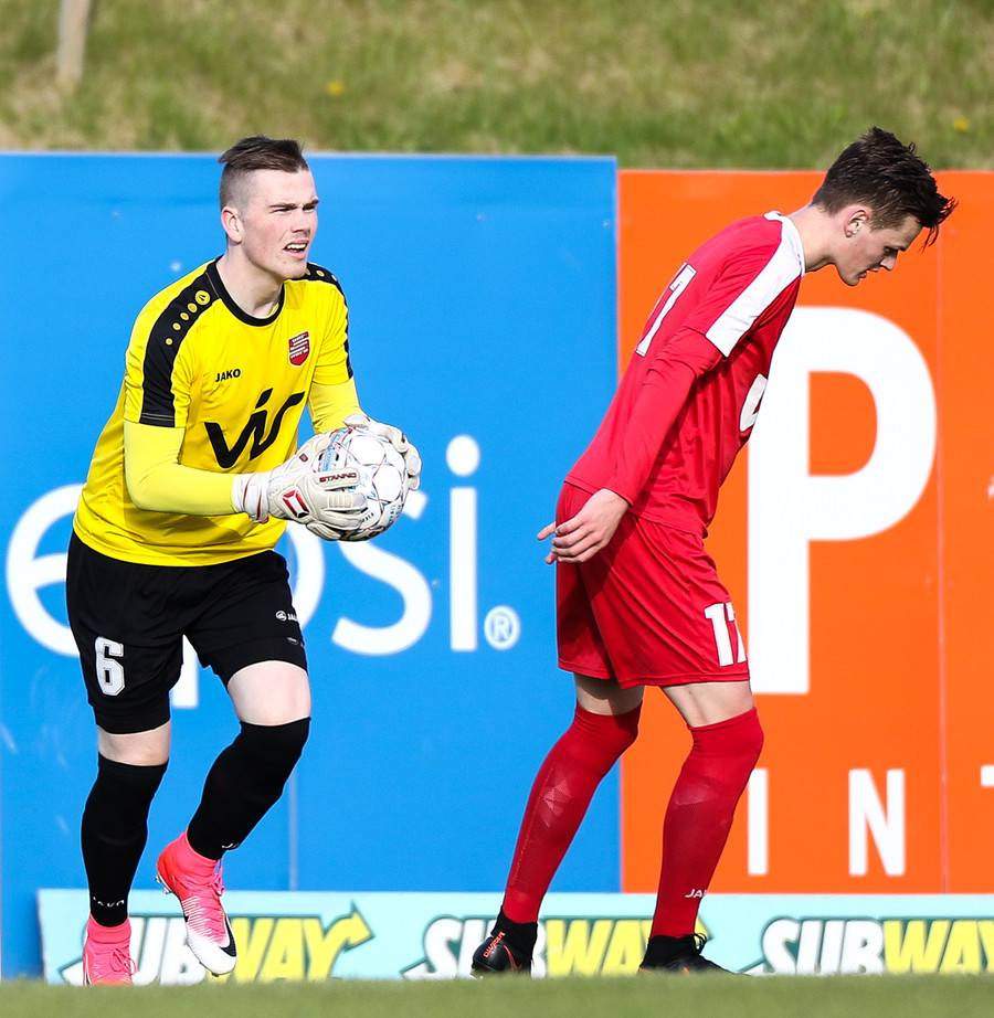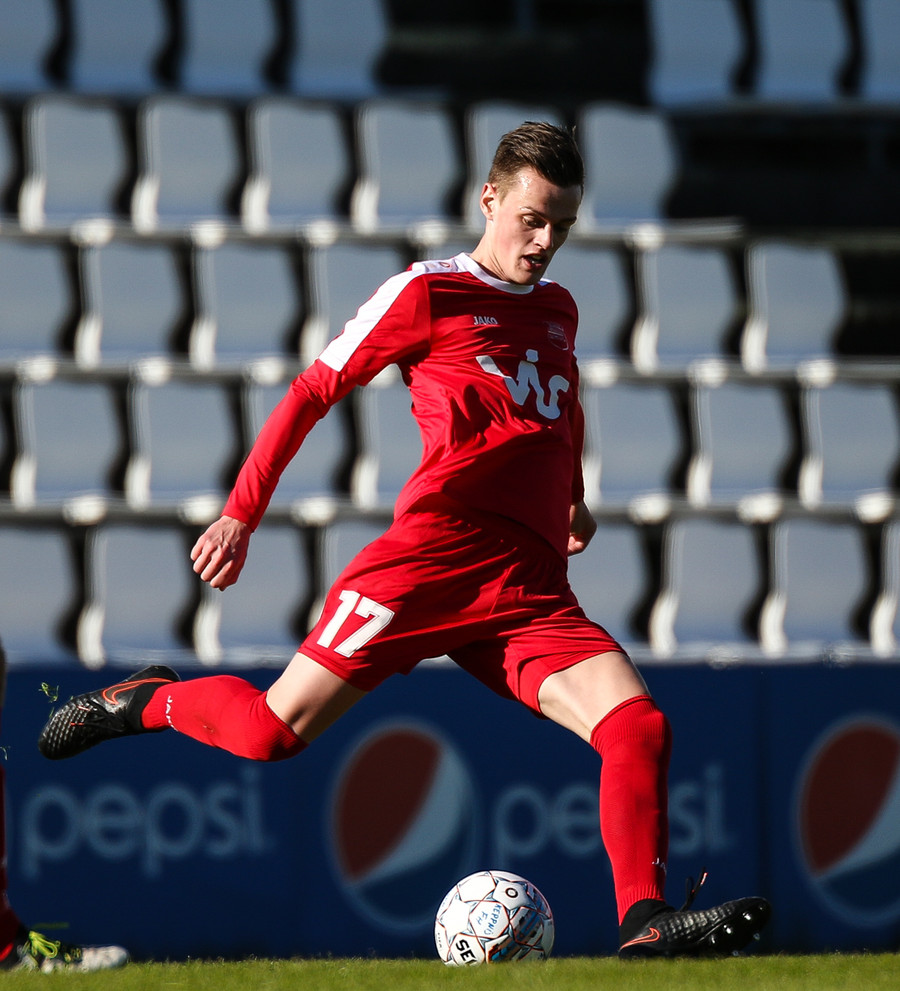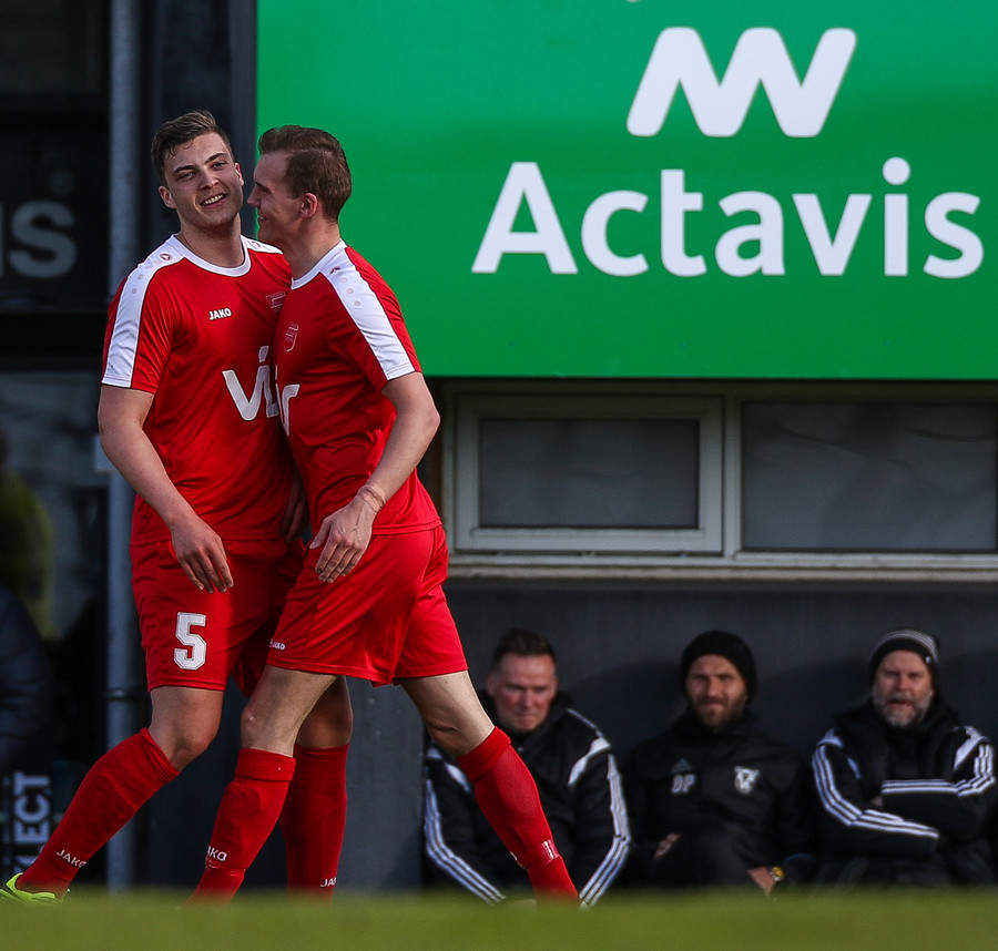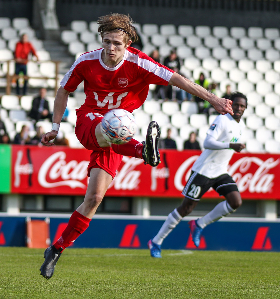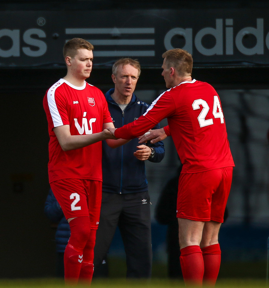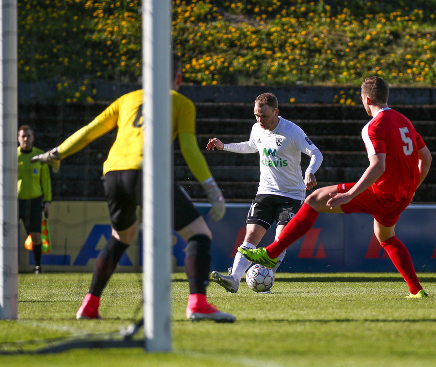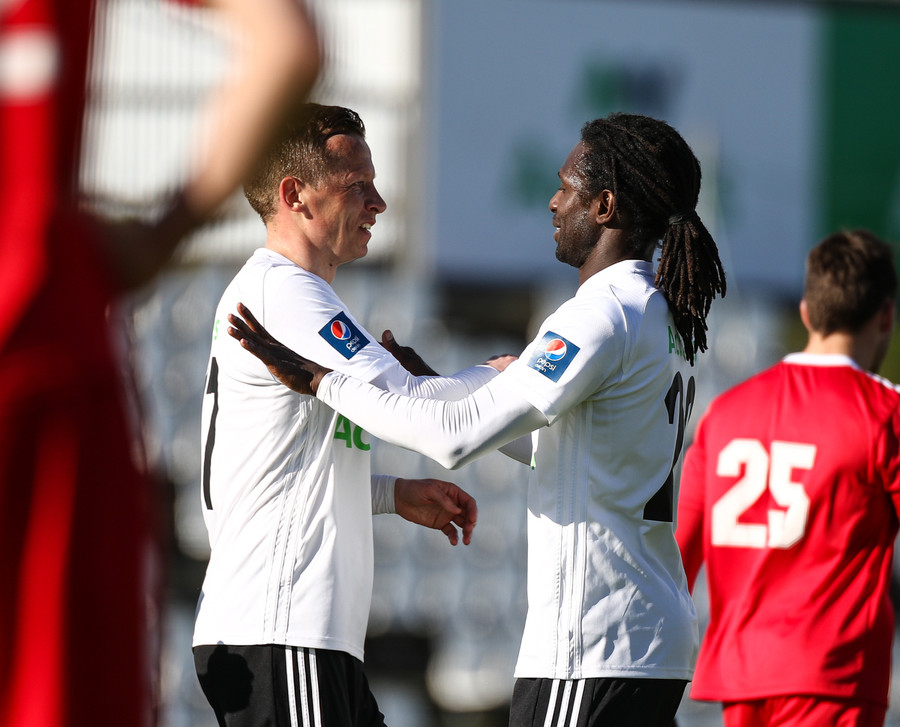 Kassim átti skalla á markið sem Róbert Marvin varði en boltinn fór upp í loft og lenti svo á kolli Emils Pálssonar sem skoraði.