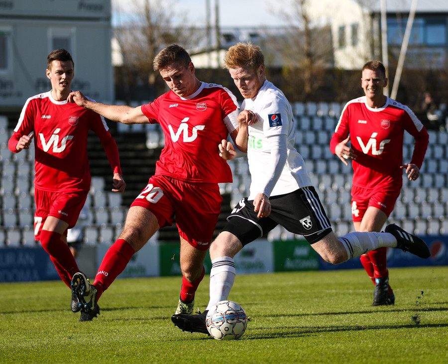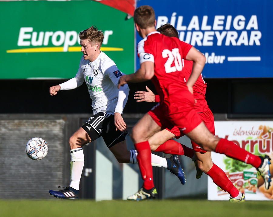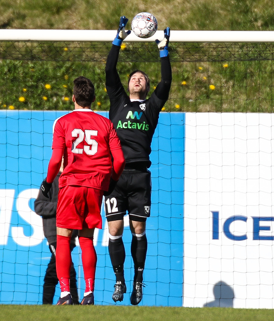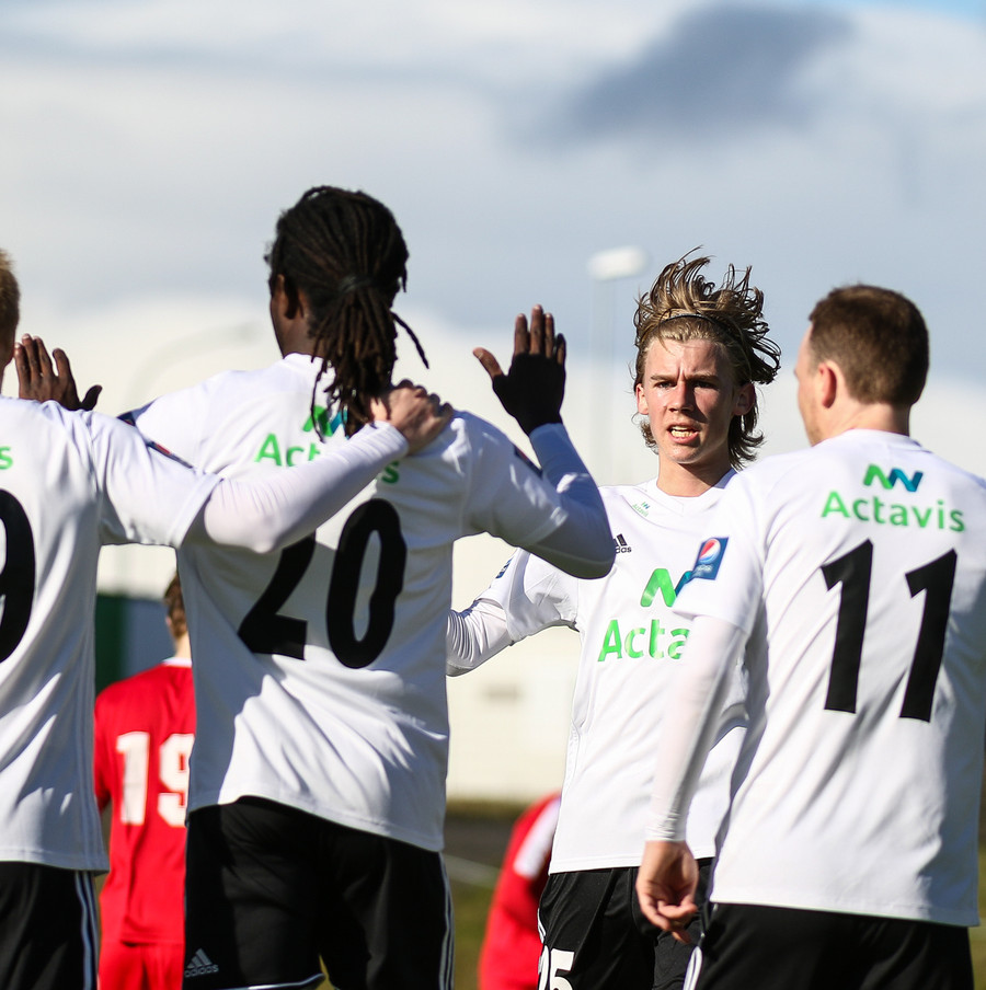 Hér í þessari textalýsingu verður einnig fylgst með tíðindum úr leik Magna og Fjölnis sem fram fer á Grenivík á sama tíma. Magni leikur í 2. deildinni. Við látum vita af tíðindum úr þeim leik.
