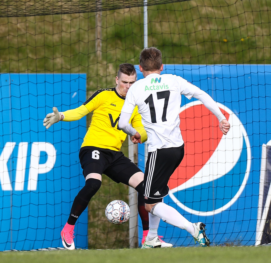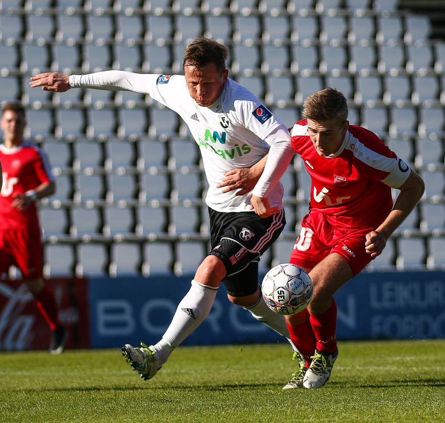 Akil De Freitas stingur Bergsvein Ólafsson af og kemst í dauðafæri á móti Vigni í markinu en renndi boltanum framhjá! Bergsveinn leit mjög illa út þarna.