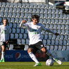 Jón Ragnar með skot, nær ekki miklum krafti í það og boltinn beint á Róbert Marvin, markvörð Sindramanna.