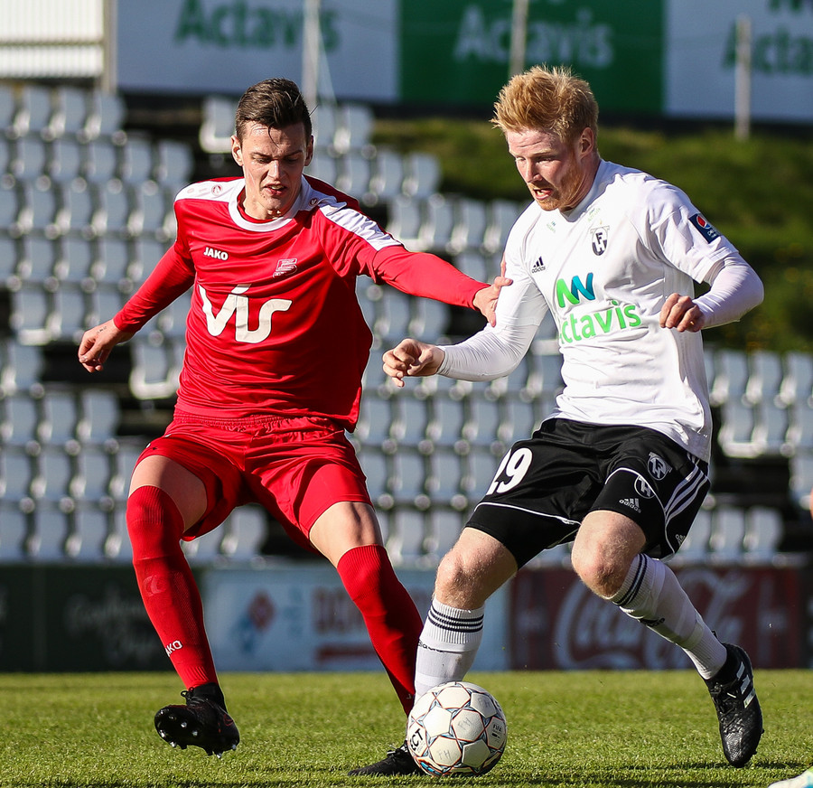 Miðvörðurinn marksækni að fara á kostum. Atli Viðar renndi boltanum á Kassim sem átti hnitmiðað skot sem fór framhjá markverði Sindra.
