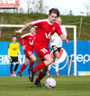 Halldór Orri í fínu færi en varnarmaður Sindra nær að komast fyrir skotið. FH-ingar að reuna að ná þriðja markinu fyrir hlé.