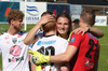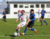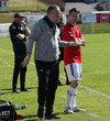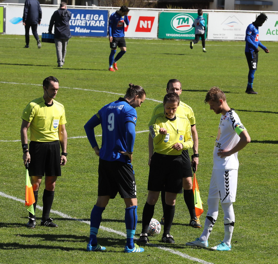 Jarlinn spjaldar Sigga eftir að boltinn fer úr leik. Sá ekki hvað hann gerði til að verðskulda það