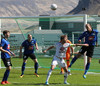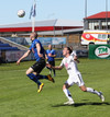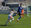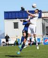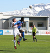 Fyrsta marktilraunin er LOKSINS komin í seinni hálfleik. Matt Garner með skalla sem veitir litla hættu
