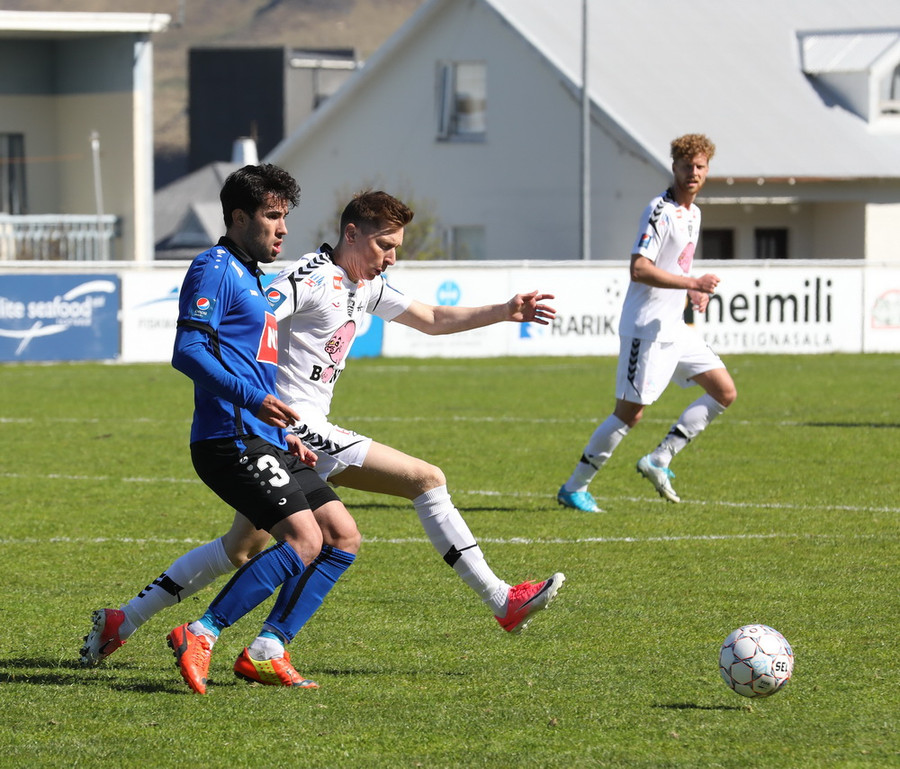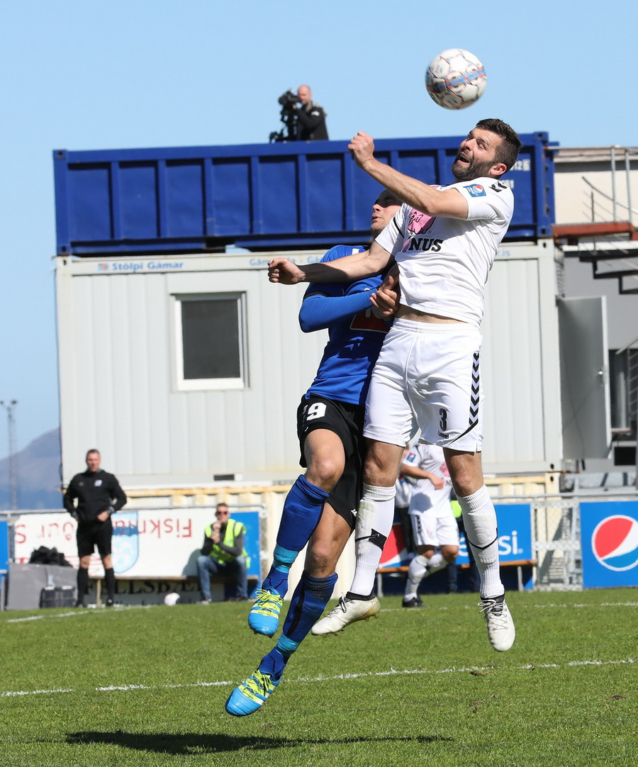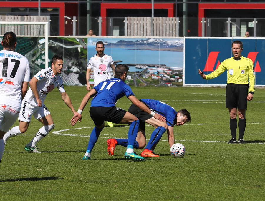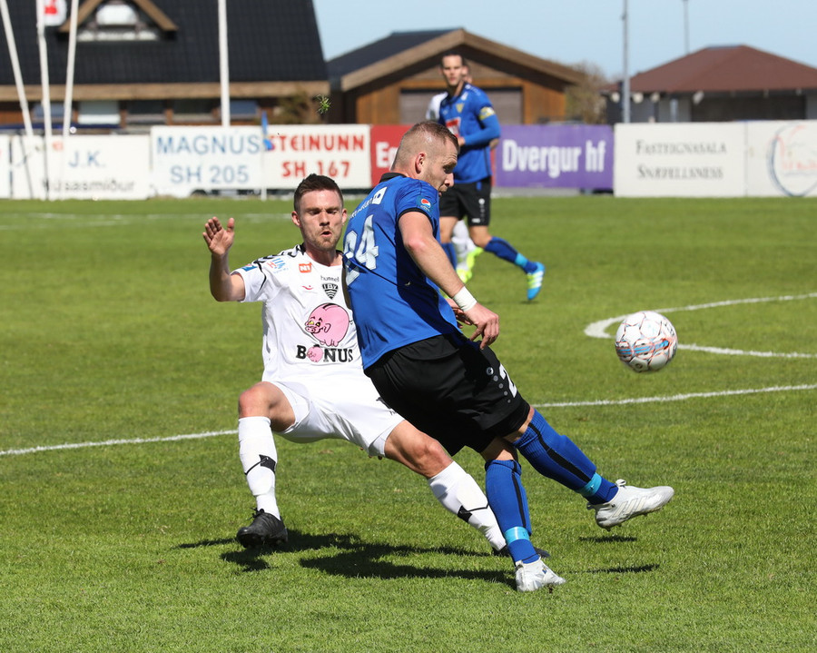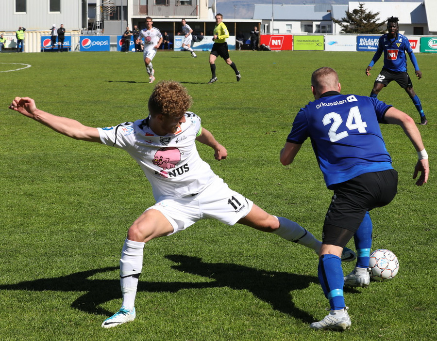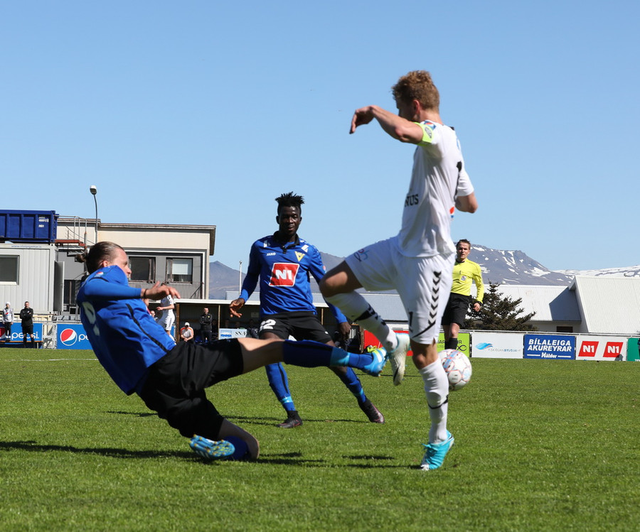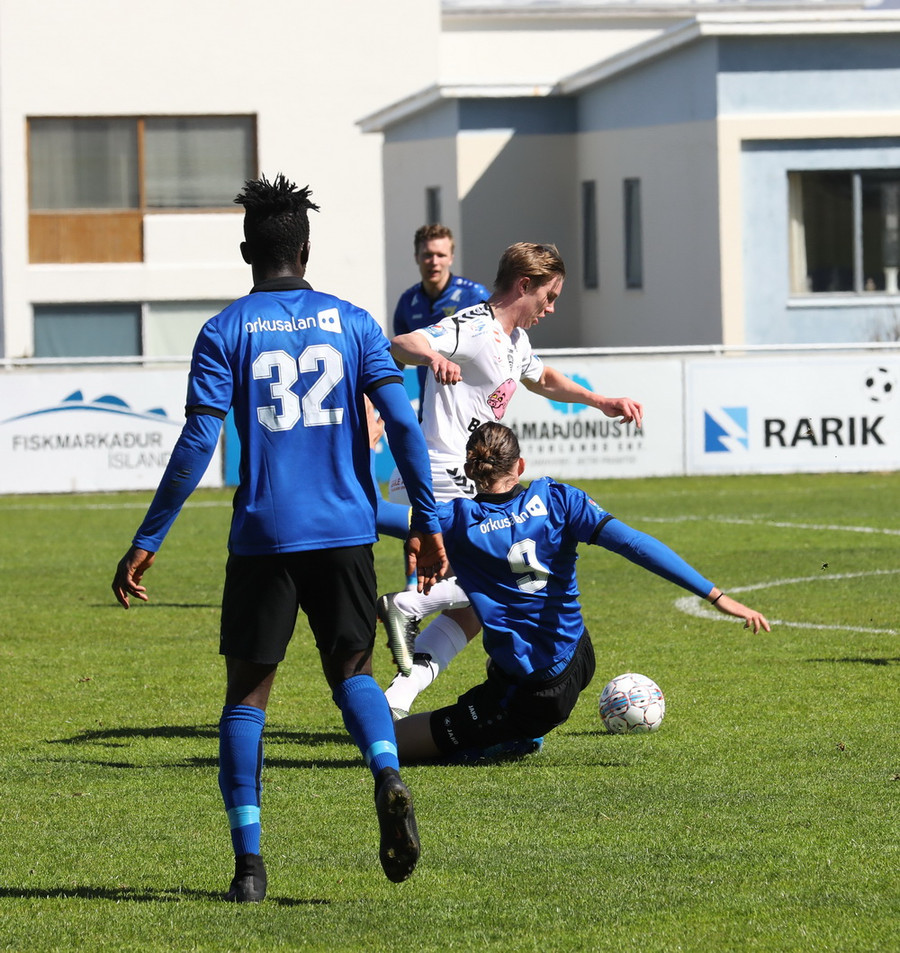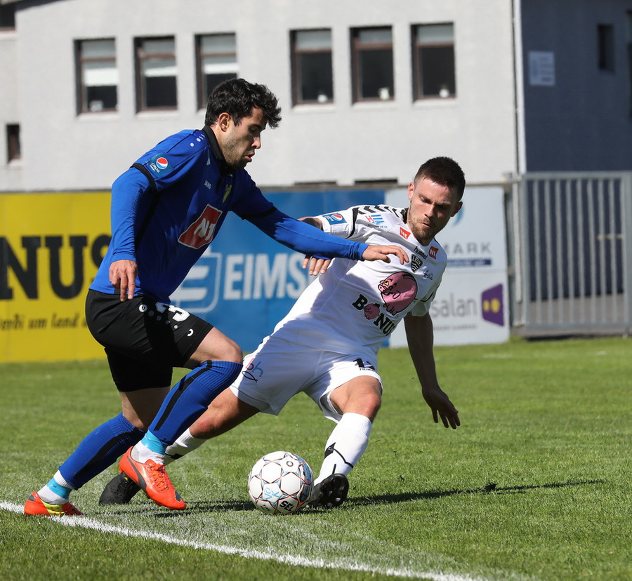 Montejo að krækja í aukaspyrnu á hættulegum stað. Sindri og Pablo standa yfir þessu