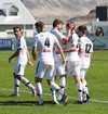 Þrátt fyrir markið þá halda heimamenn áfram að stjórna spili leiksins og eru að sækja meira