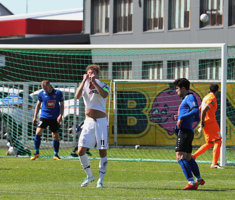 Kenan gerði frábærlega og keyrði inná völlinn frá kantinum. Skot hans fór í varnarmann og Guðmundur Steinn tók frákastið og lagði boltann út við stöng. Aðstoðardómarinn taldi hann hins vegar vera í rangstöðu og flaggaði markið af