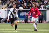 Boltinn skoppar í teignum og Indriði hittir hann illa. Skot hans fer hátt yfir. Þetta er líklega búið núna.
