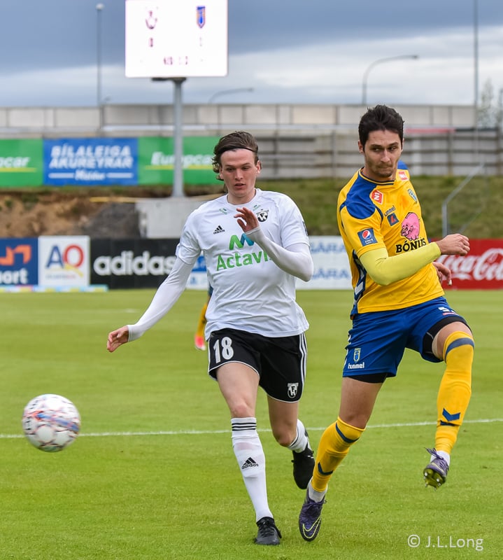 Gaman að horfa á Binna bolta sýna tilþrif hér í upphafi. Hann er mjög ógnandi. Tekur góða gabbhreyfingu og á svo skot sem fer í Drauminn, Kassim Doumbia. Líf og fjör.