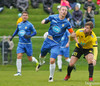 Heldur betur líf í þessu núna! Steinar Þorsteins vinnur boltann af varanarmanni Grindvíkinga og kemur með boltann fyrir en varnamenn gestanna rétt koma þessu frá.