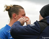 Seinni hálfleikurinn er hafinn og reglum samkvæmt er það ÍA sem byrjar með boltann og sækja í átt að höllinni.