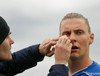 Hewson með skot langt utan teigs og ætlar að setja hann yfir Kale en hann bjargar sér fyrir horn og slær boltann yfir.