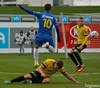Flott sókn hjá Grindavík sem endar með fyrirgjöf frá vinstir beint á Aron Frey sem ætlar að fara framhjá Aroni Inga en endar á að senda boltann beint í fangið á Kale.
