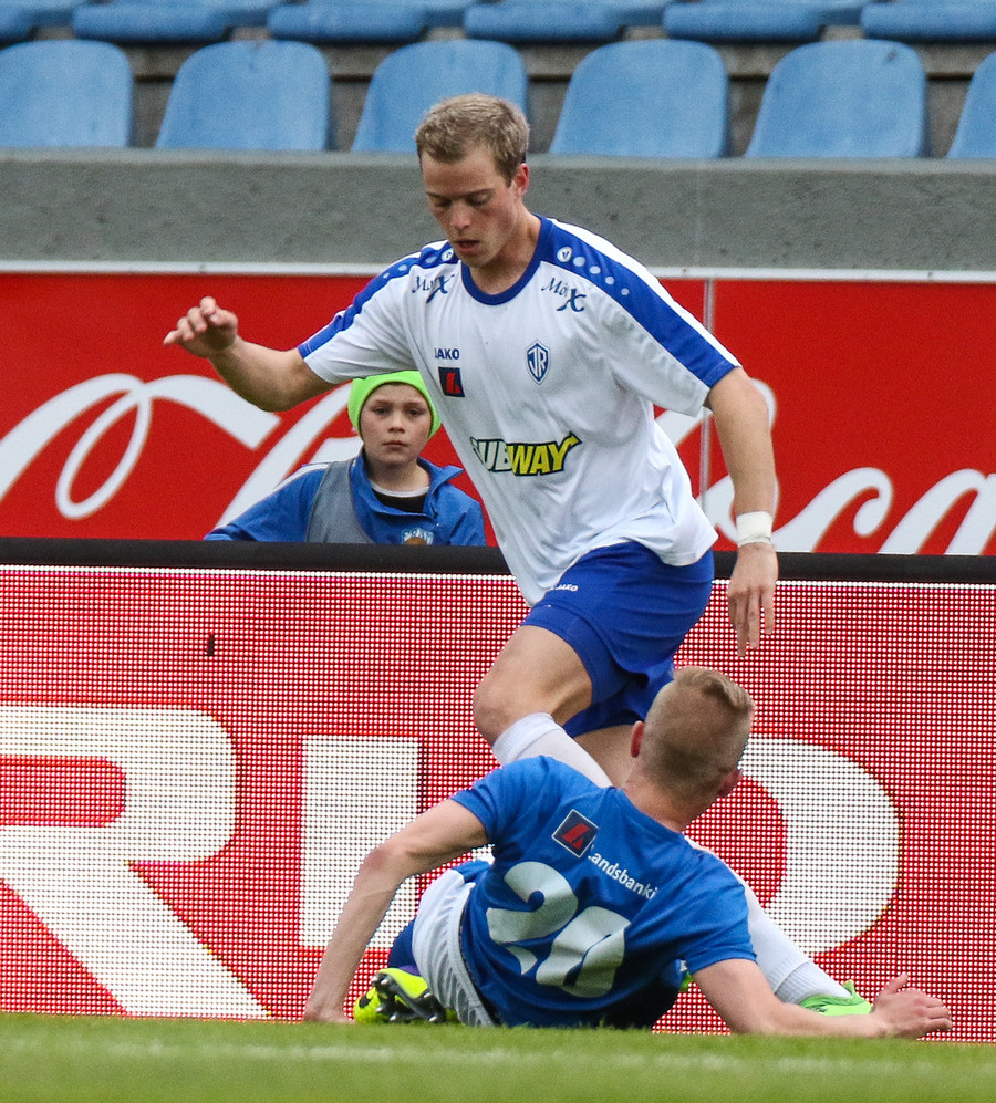 Helgi Guðjónsson fær boltann inn fyrir og leikur á Steinar í markinu sem virðist brjóta á honum en dómarinn beitir hagnaðinum og Brynjar rúllar boltanum í autt markið!