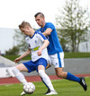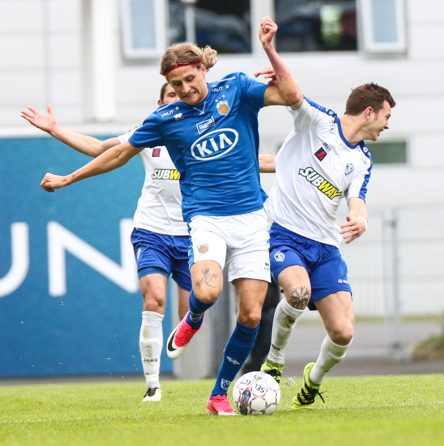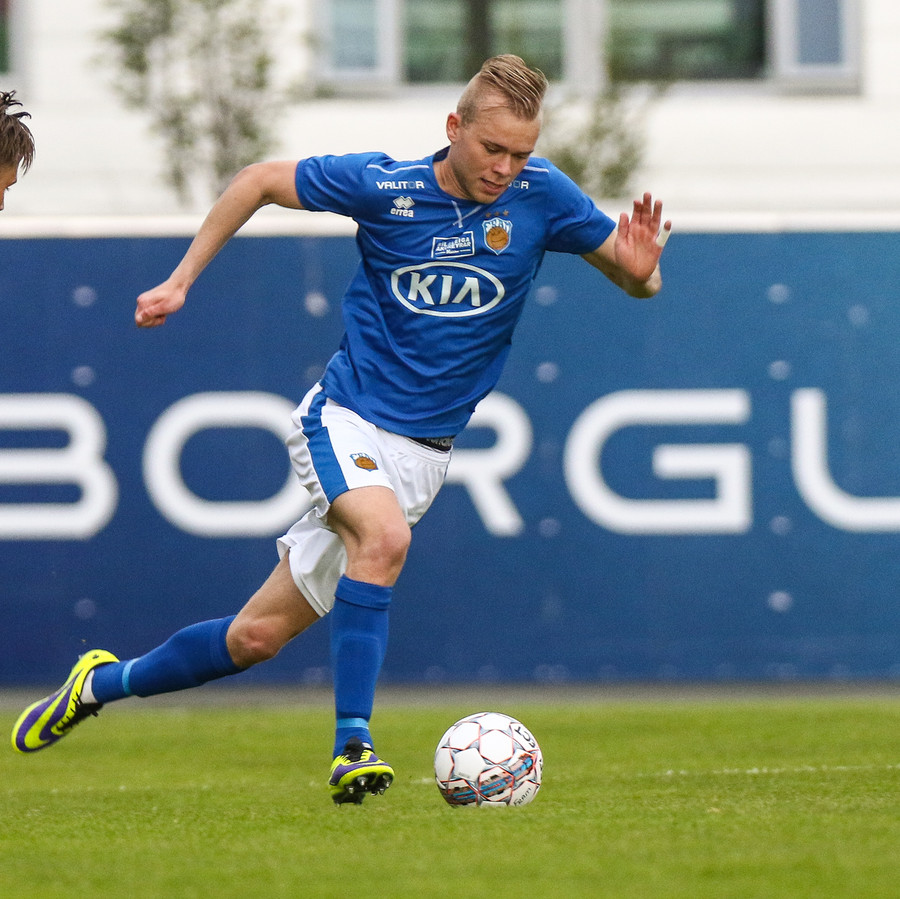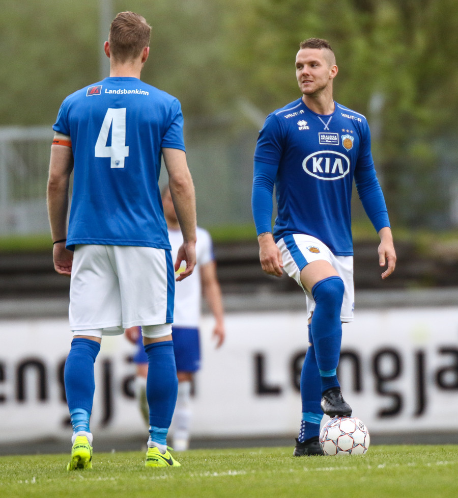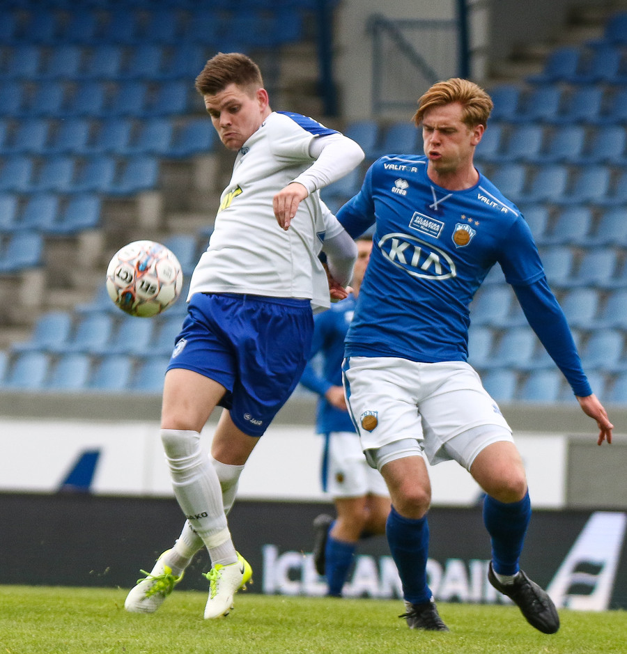 Alex Freyr Elísson á eitraða fyrirgjöf sem Ivan Bubalo rétt missir af áður en boltinn siglir aftur fyrir.