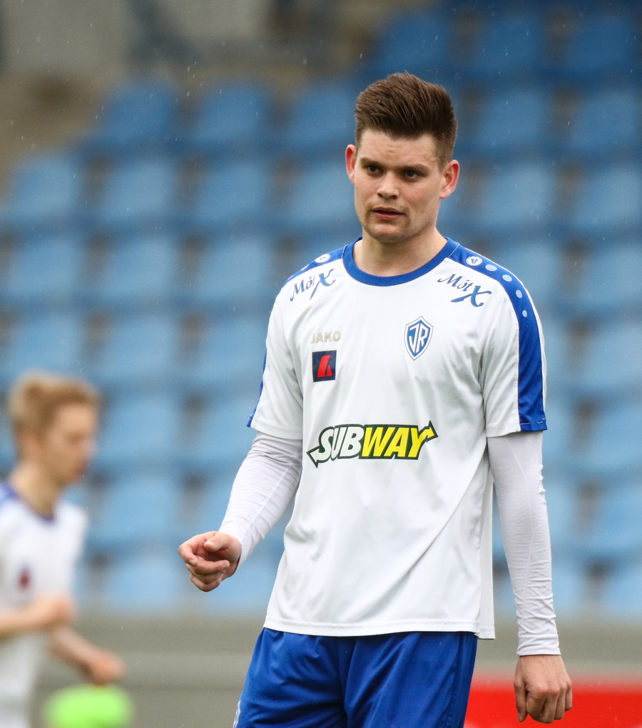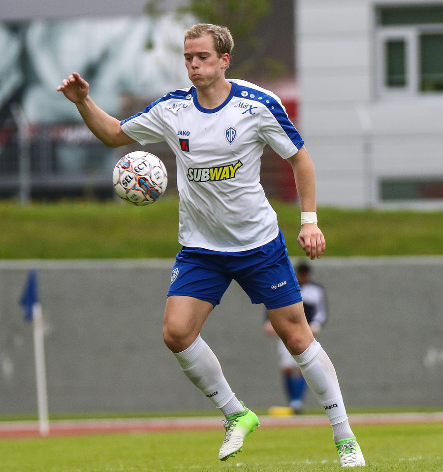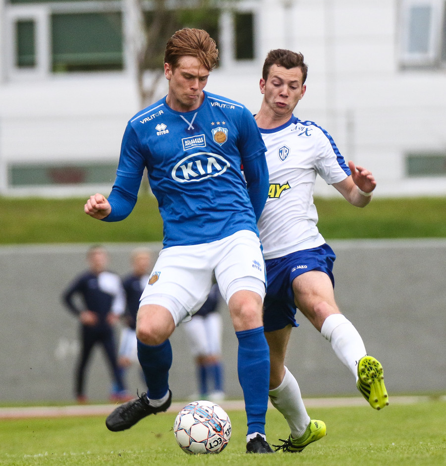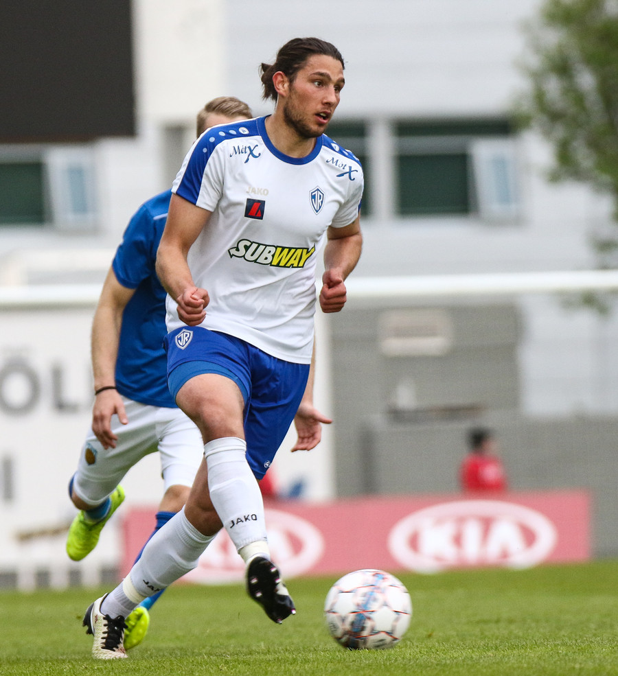 Jóhann Arnar Sigurþórsson fær boltann út á vinstri kantinu áður en hann sker inn og reynir skot af löngu færi en það hátt yfir.