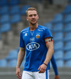 Simon Smidt reynir fyrirgjöf sem fellur fyrir Indriða við vítateigslínuna og hann reynir að snúa boltann í fjærhornið en þessi rétt yfir!