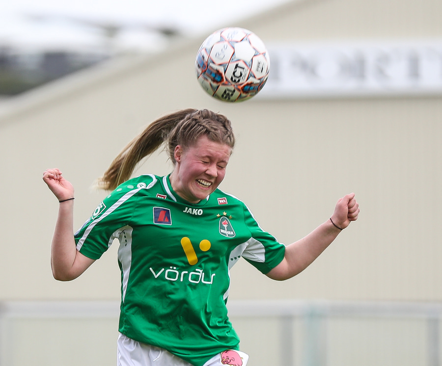 Fyrst á Berglind Björg góðan skalla eftir fyrirgjöf Fanndísar en Bryndís sýnir snörp viðbrögð og mikinn styrk og nær að verja.