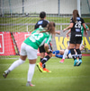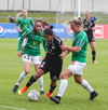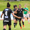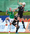 Ingibjörg lætur "borgarstjórann" finna fyrir því og skrokkar henni í burtu þannig að Sonný á greiða leið að boltanum.