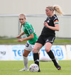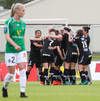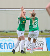 Dauðafæri!! Berglind rennir boltanum fyrir markið en Arna Dís rétt missir af honum af markteig.