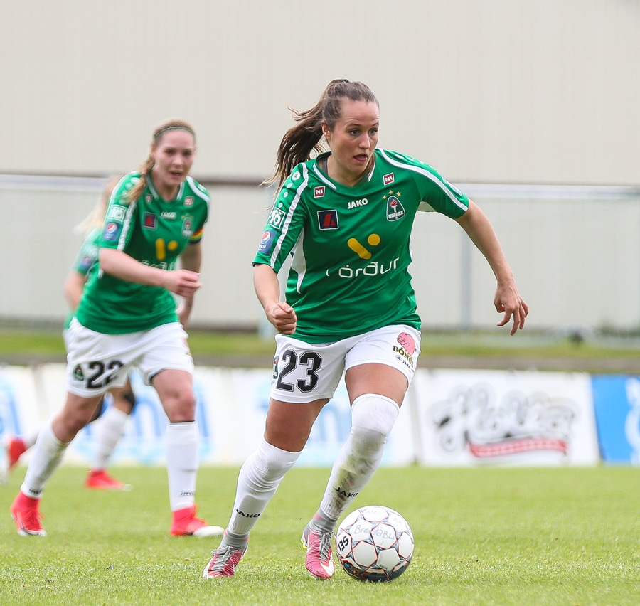 Berglind Björg sparkar þessu af stað fyrir Breiðablik sem leikur í átt að Smáranum.